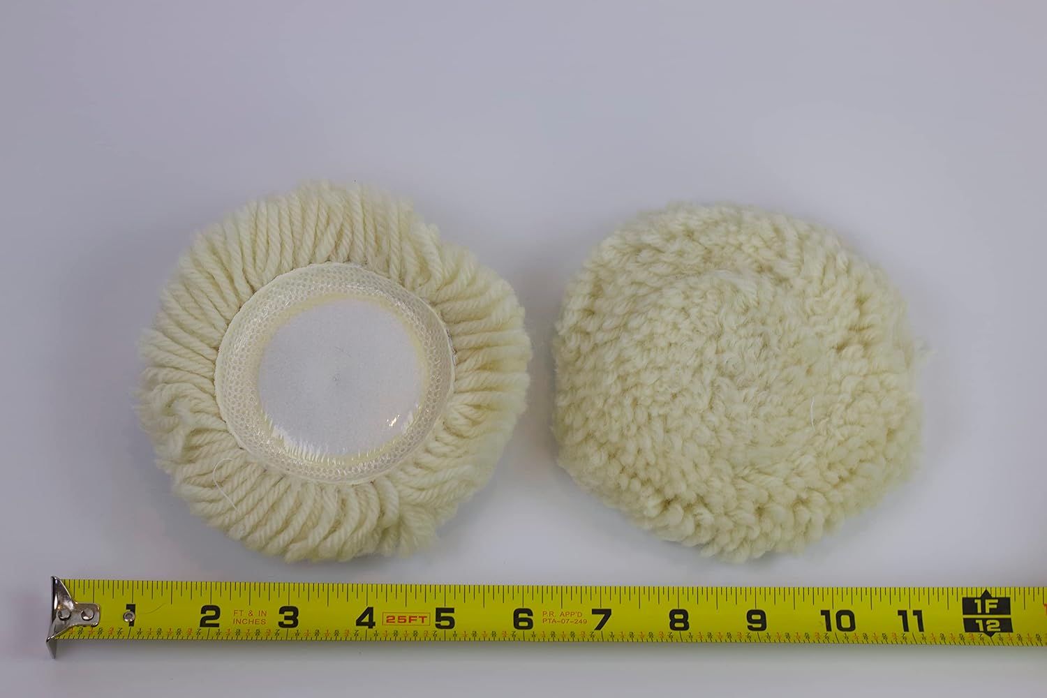 PMD Products 5pk 3" Inch (75MM) Buffer Polish Pads Long Natural Wool Hook and Loop Attached