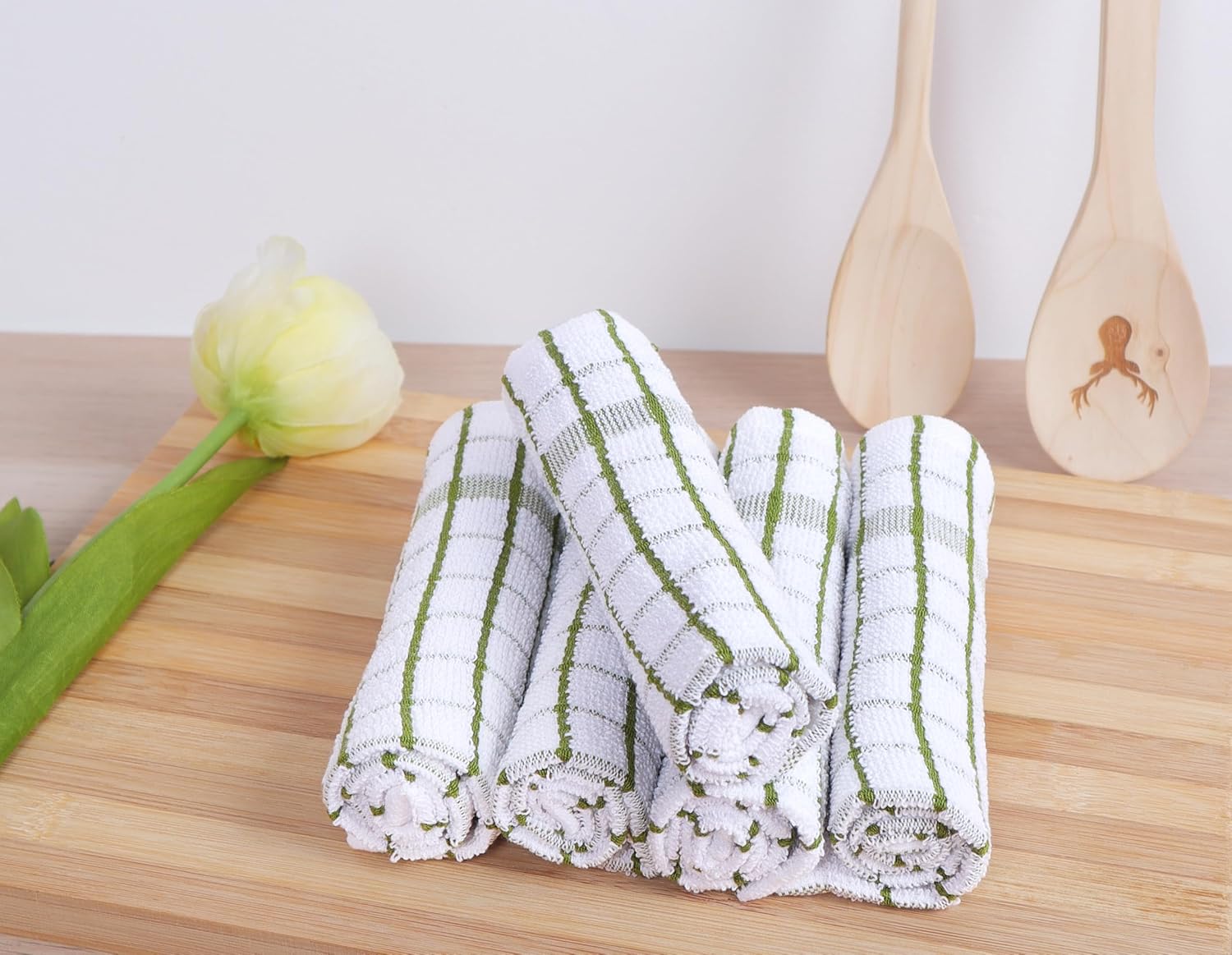 AMOUR INFINI Kitchen Dish Cloths Set of 8 - Ultra Soft, Highly Absorbent, Quick-Drying Terry Cotton Dishcloths 12"x12" Inch Wash & Cleaning Cloths for Kitchen & Dishwashing (Green)