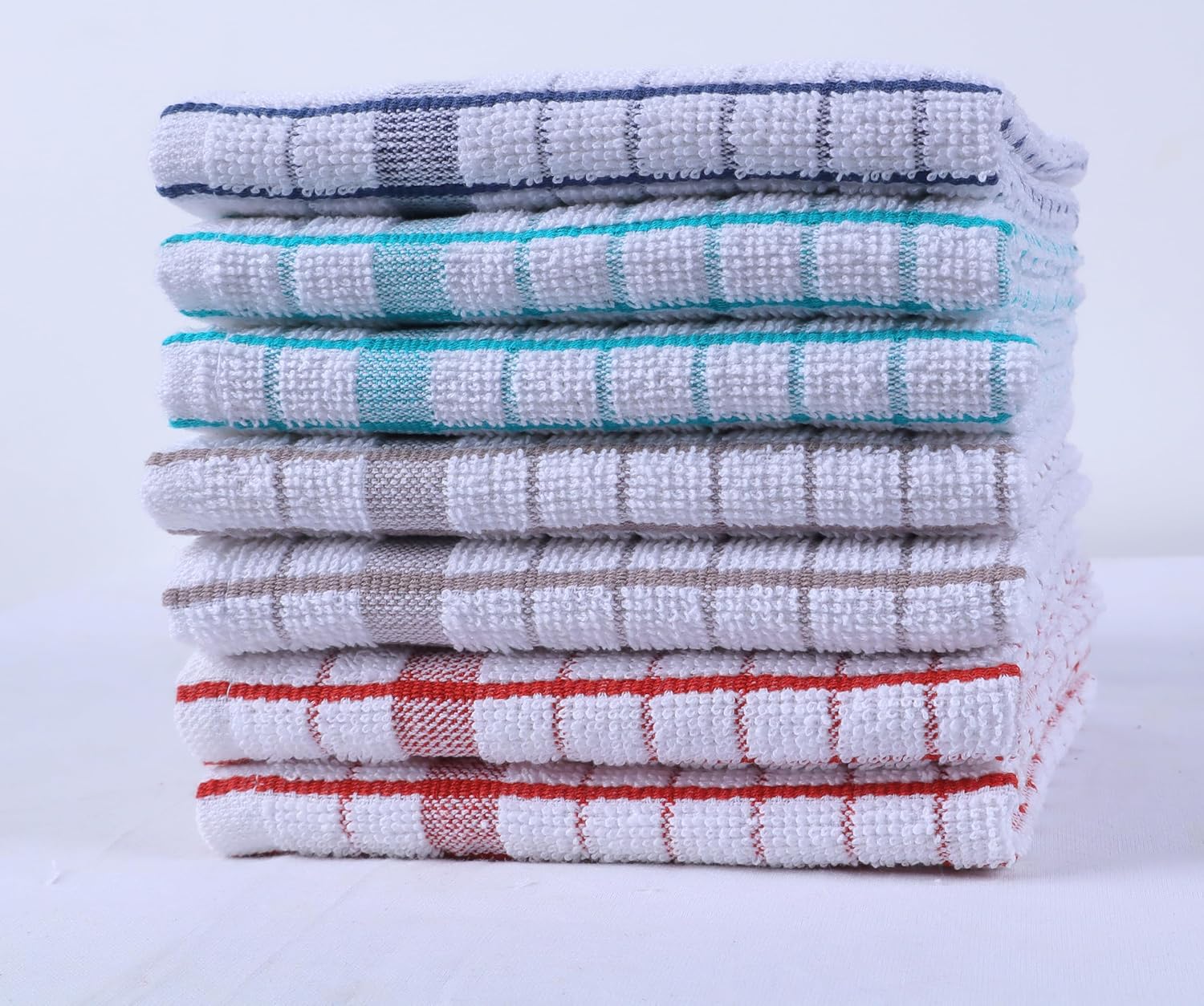 • SET OF 8 DISHCLOTHS: This set includes 8 premium-quality, 12" x 12" dish cloths, crafted from , high-density terry cotton. Ideal for everyday kitchen use, each cloth provides an excellent balance of softness and absorbency, ensuring a luxurious feel and optimal cleaning performance.