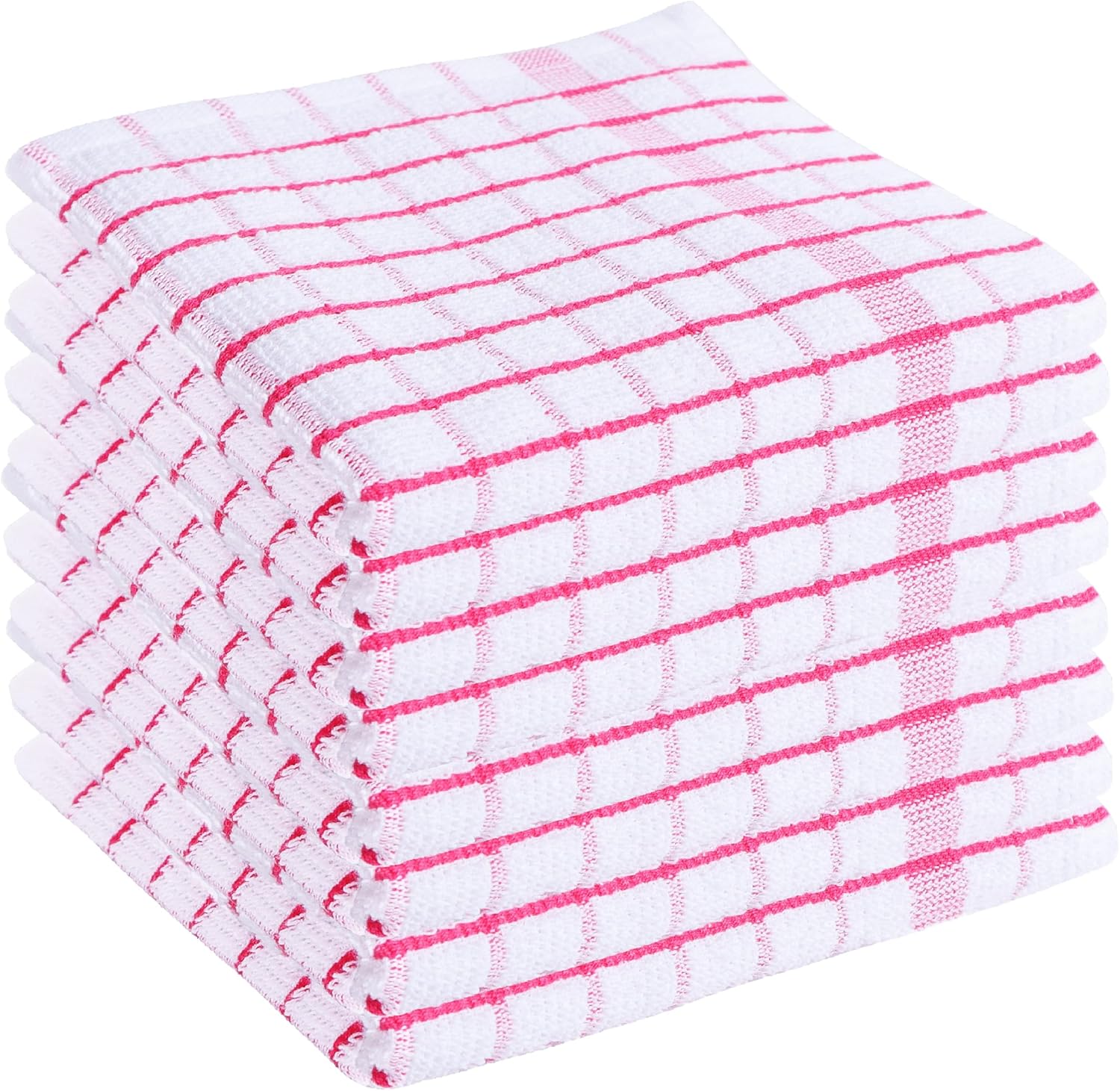 AMOUR INFINI Kitchen Dish Cloths Set of 8 - Ultra Soft, Highly Absorbent, Quick-Drying Terry Cotton Dishcloths 12"x12" Inch Wash & Cleaning Cloths for Kitchen & Dishwashing (Pink)