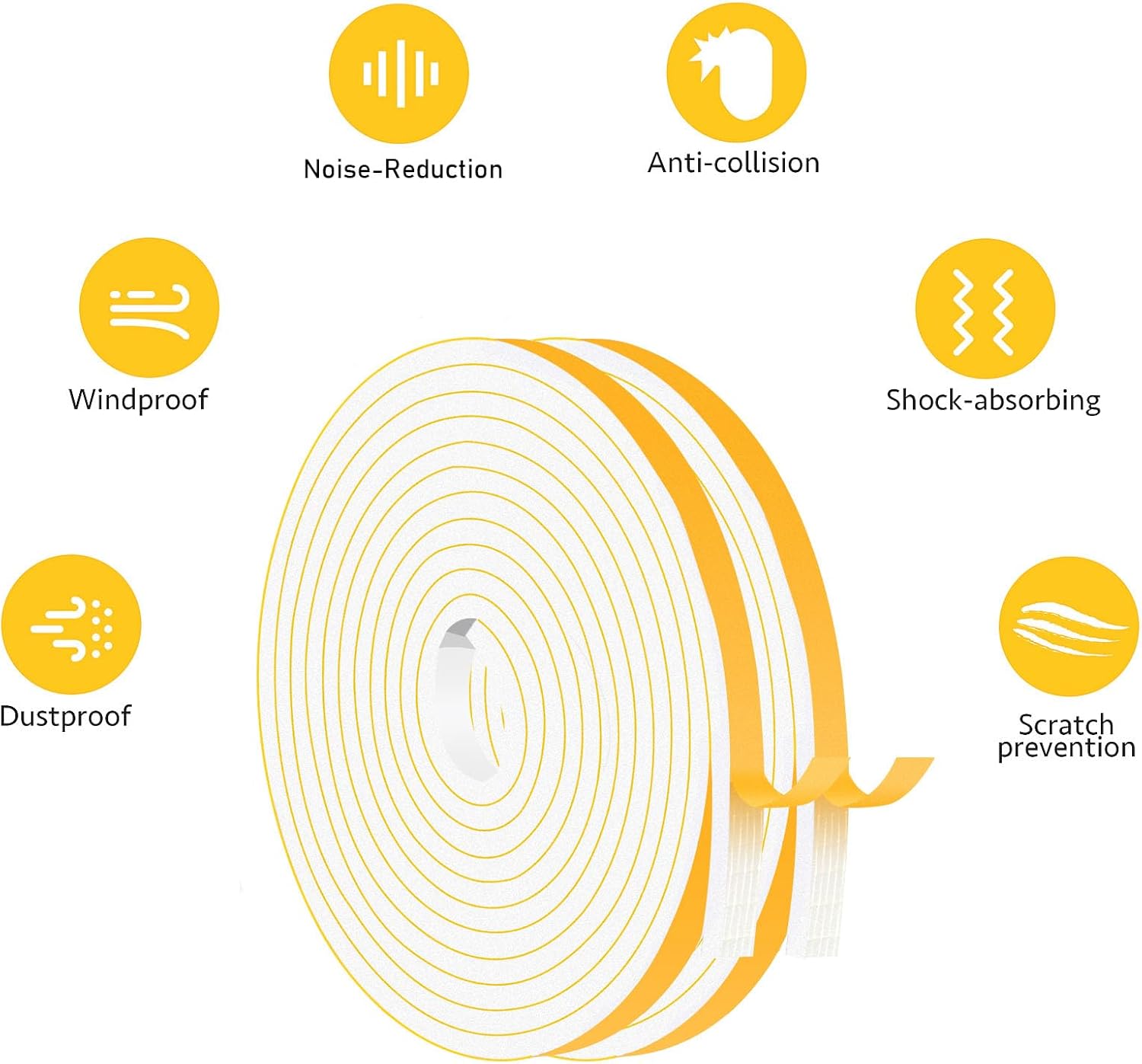 • 🟠2 ROLLS VALUE PACK-This package includes 2 rolls of 1/2 in x 1/4 in x 13Ft high density door insulation strip, total 26Ft in length, which means that two rolls foam seal tape are packed together.