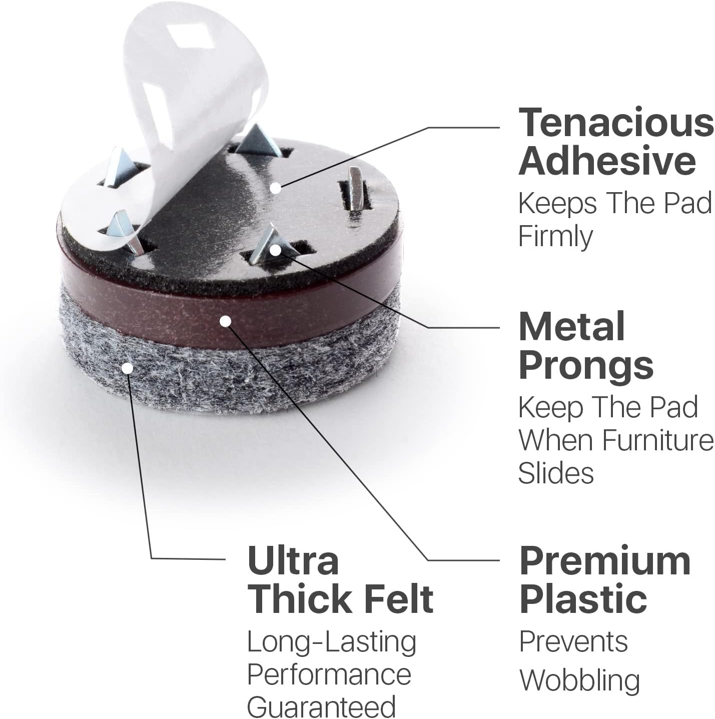 Felt Furniture Pads X-Protector 16 PCS - 1" Felt Pads with Prongs - Premium Felt Chair Pads - Furniture Pads for Hardwood Floors - Chair Floor Protectors for Hardwood- Slide Your Furniture Easily!