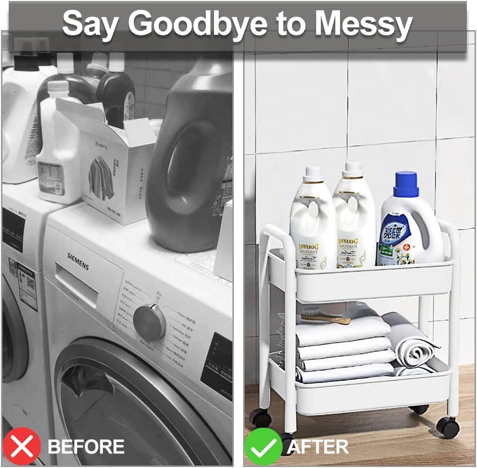 • 👍【Multifunctional Storage】-- This 2 tier rolling storage cart has multiple functions which can be used anywhere you want it to be such as office, bathroom, kitchen, art studio, salon, garden, garages, laundry rooms hobby and craft areas and so on. It can be used as a tools cart, organization rack, sofa or bed side end table, nightstand, book cart, bedroom/living room storage cart and so on.