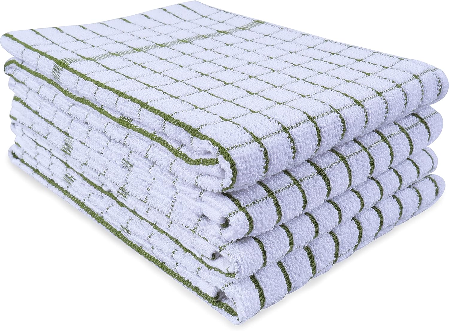 • SET OF 4 DISH TOWELS: This pack includes 4 premium 20" x 28" kitchen dish cloths made from soft, highly absorbent terry cotton. Perfect for everyday kitchen use, these dish towels offer excellent absorbency and durability for drying dishes, cleaning, and wiping surfaces.
