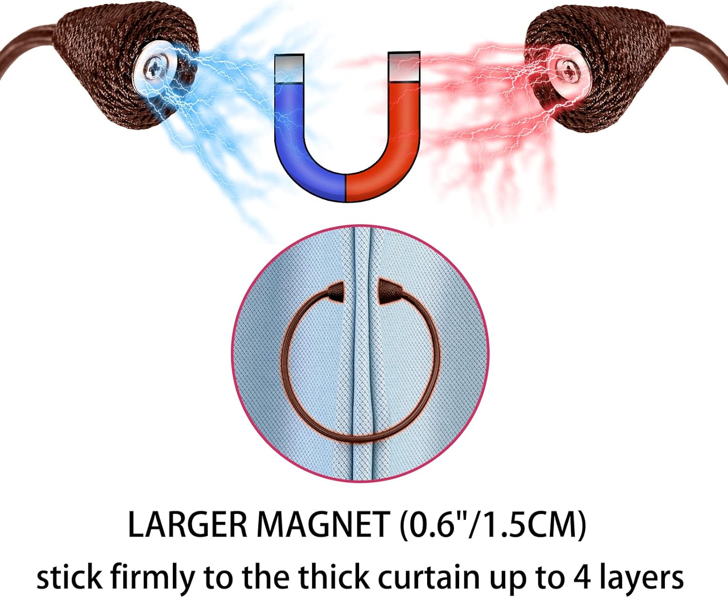• WIDE APPLICATION: The length and binding method can be adjusted freely according to the thickness of the curtain. It is widely used in curtains in different places such as bedroom, living room, dining room, bathroom, kitchen, office, courtyard and so on. Different colors of magnetic drape tiebacks adorn your curtains, which can change different styles, giving the curtains a unique charm