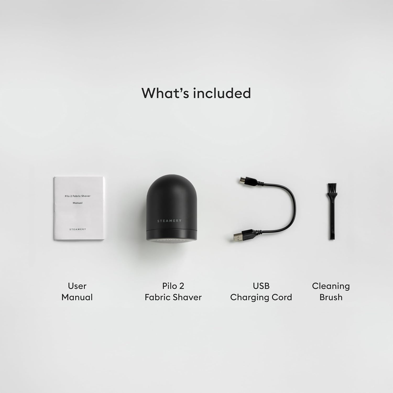 Steamery Fabric Shaver Pilo 2, Removes Lint and Pilling from Clothes and Textiles, Rechargeable Lint Remover with USB, Black