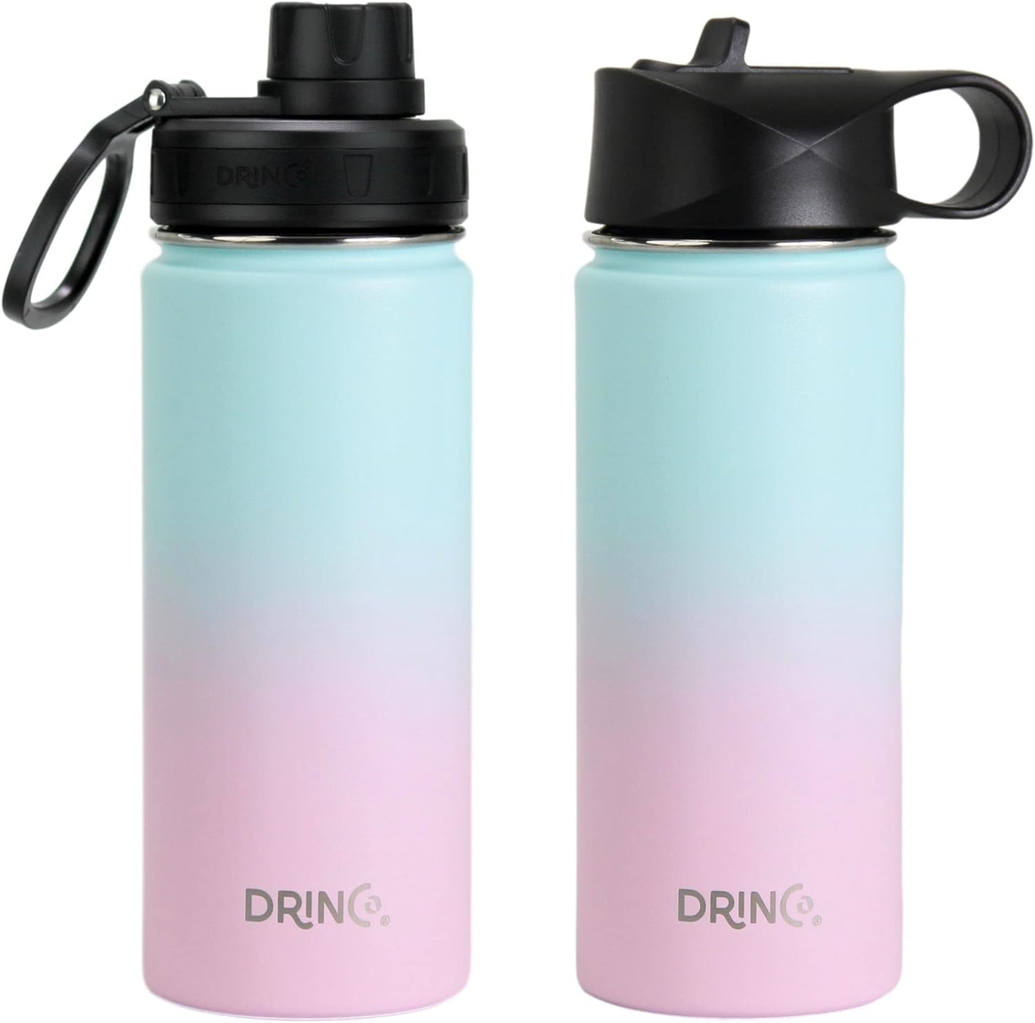 DRINCO Stainless Steel Water Bottle Spout Lid Vacuum Insulated Double Wall Water Bottle Wide Mouth (40oz 32oz 22oz 18oz 14oz) Leak Proof Keeps Cold or Hot (18 oz, 18oz Macaron)