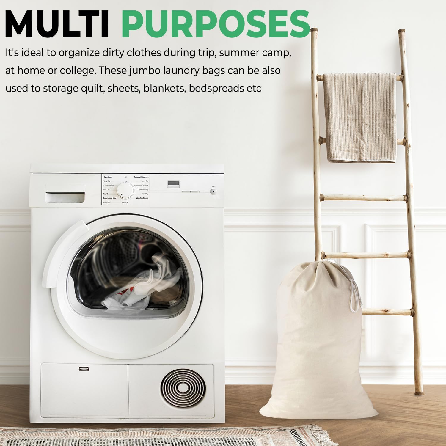 4 Pack - Extra Large Cotton Laundry Bag, Heavy Duty Large Laundry Bags 24 x 36 inch XL Drawstring Travel Organizer Bag Fit Hamper Basket Camp Home College Dorm Tear Resistant Dirty Cloth Big Storage
