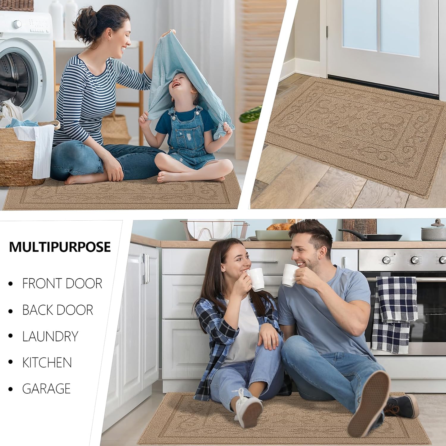 • TRAP DIRT AND MOISTURE EFFICIENTLY: Our indoor door mat is designed to keep your home clean by trapping dirt and moisture right at the entrance. Made from premium Polypropylene with dense yarns, this door mat quickly scrapes dirt off shoes, ensuring your floors remain dry and spotless. Keeping the floors clean and dry. Widely used in any weather, especially rainy, snowy or muddy weather. Suitable for front door, back door, entryway, indoor entrance, etc