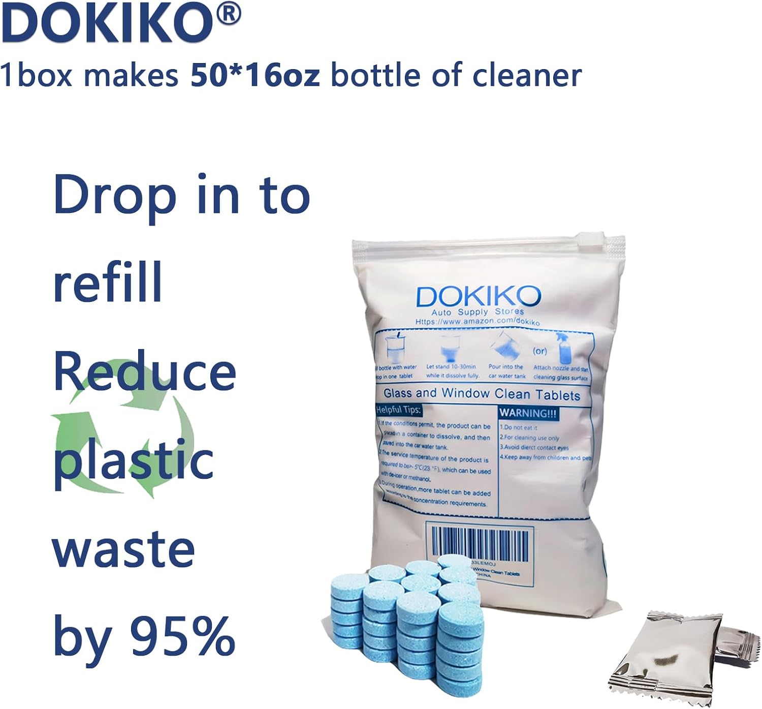 • 【Cost-Effective & Space-Saving】 Save money and storage space! 1 tablet makes 16 fl oz of cleaner spray, and 1 pack provides a year’s supply. Also works as windshield washer fluid (1 tablet = 1 gallon).