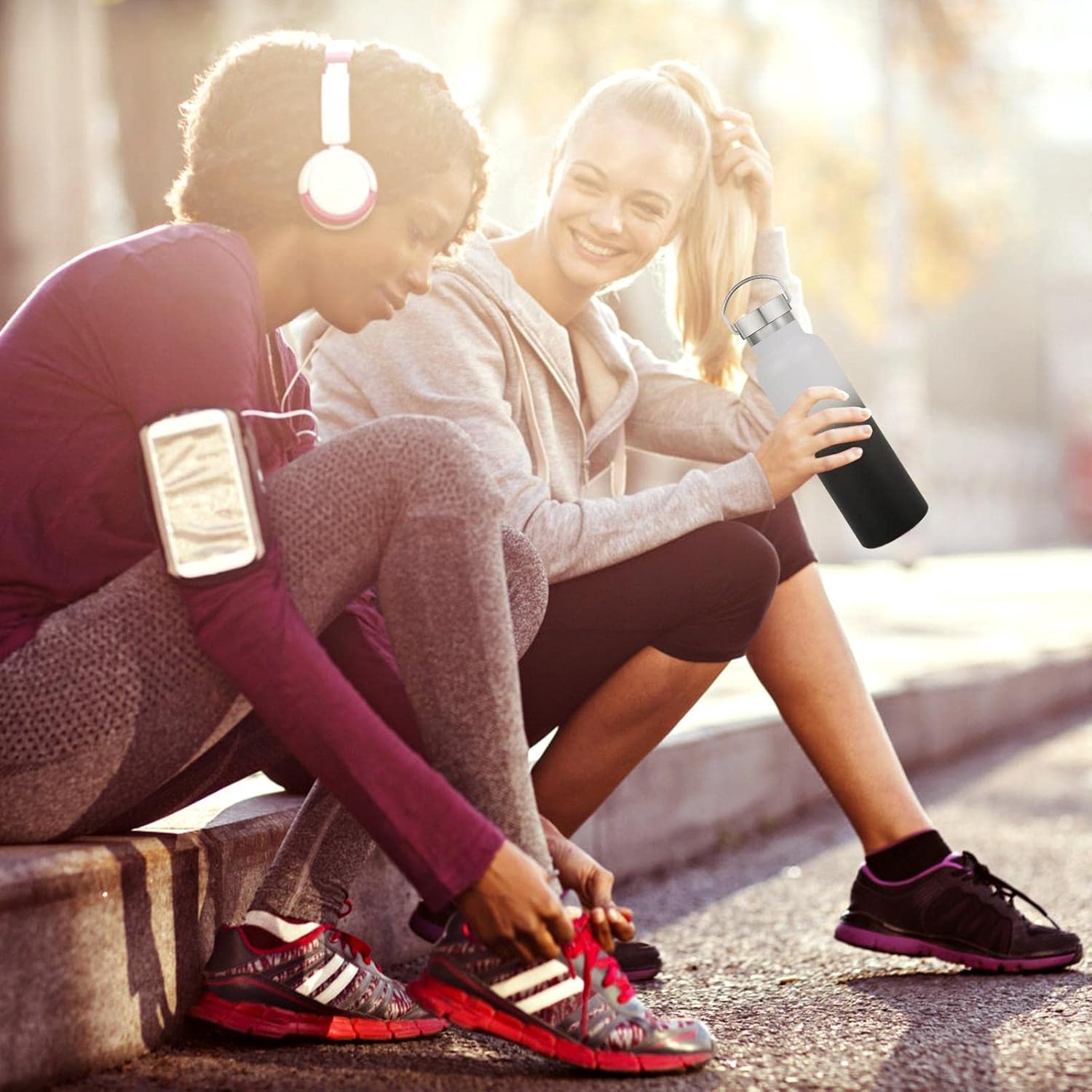 • PERFECT SIZE AND KEEP WARM FOR A LONG TIME: Our double wall insulation bottle protects temperature for up to 12 hours . The 20 oz stainless steel water bottle is perfect for everyday use and the cups fit on the bike cup holder and inside the backpack for your hiking, biking, beach, camping and fitness