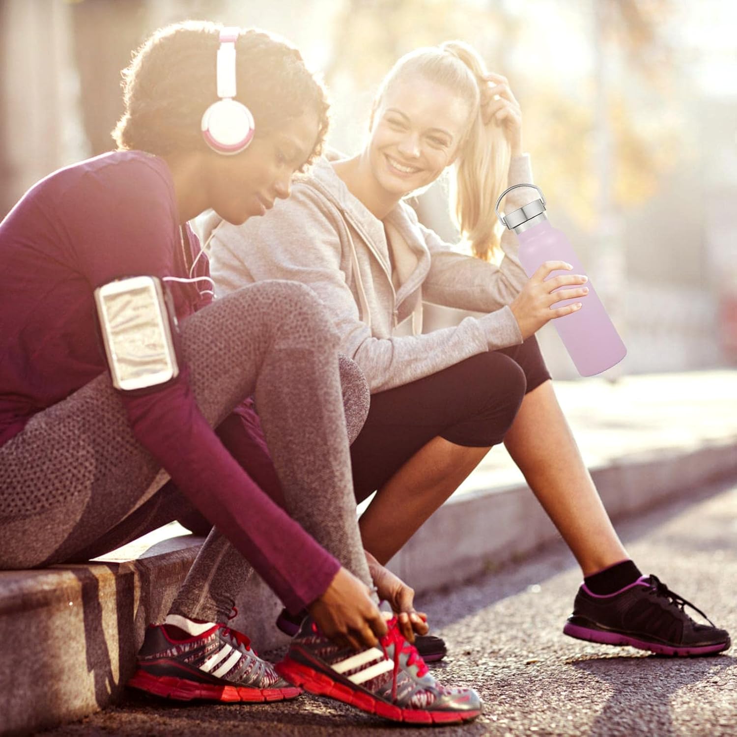 • PERFECT SIZE AND KEEP WARM FOR A LONG TIME: Our double wall insulation bottle protects temperature for up to 12 hours . The 20 oz stainless steel water bottle is perfect for everyday use and the cups fit on the bike cup holder and inside the backpack for your hiking, biking, beach, camping and fitness