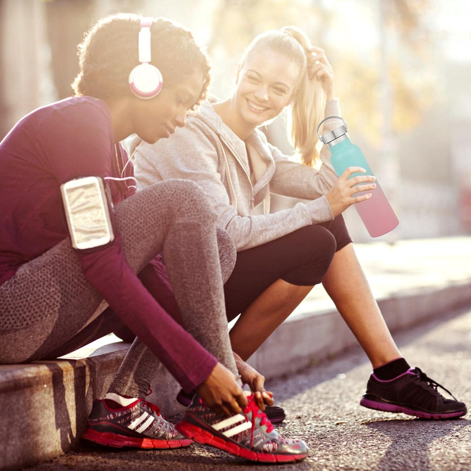 Neihepal Gradient Stainless Steel Water Bottles,20 Ounce Vacuum Insulated Double Wall Travel Bottle with Leak Proof Lid of Handle,Metal Reusable Standard Mouth Flask Thermoses for School,Hikers,Gift