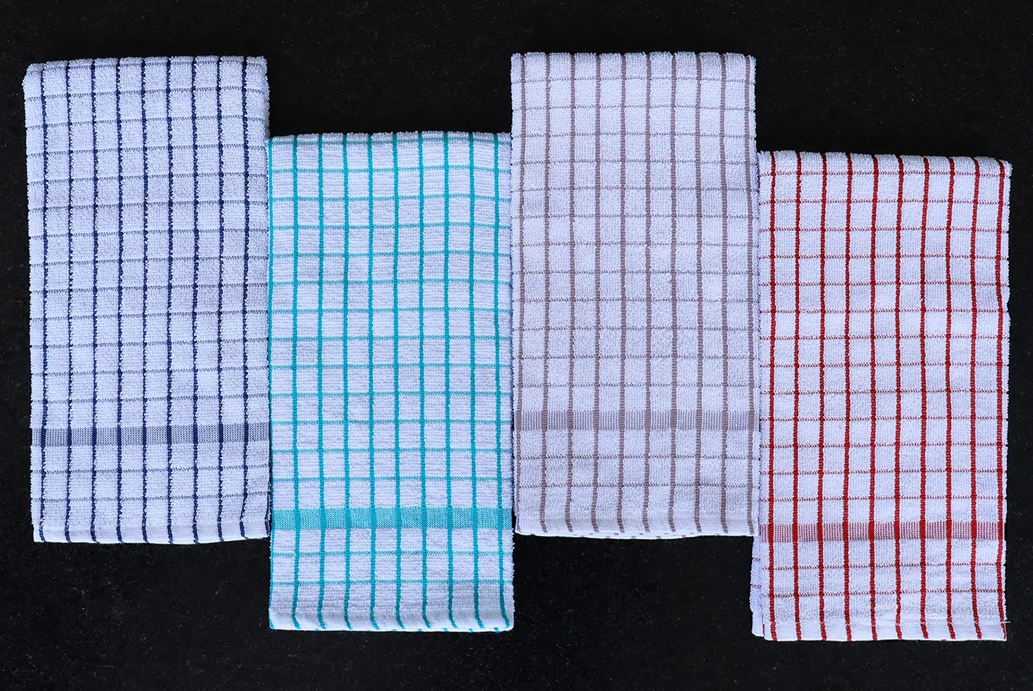 • SET OF 4 DISH TOWELS: This pack includes 4 premium 20" x 28" kitchen dish cloths made from soft, highly absorbent terry cotton. Perfect for everyday kitchen use, these dish towels offer excellent absorbency and durability for drying dishes, cleaning, and wiping surfaces.