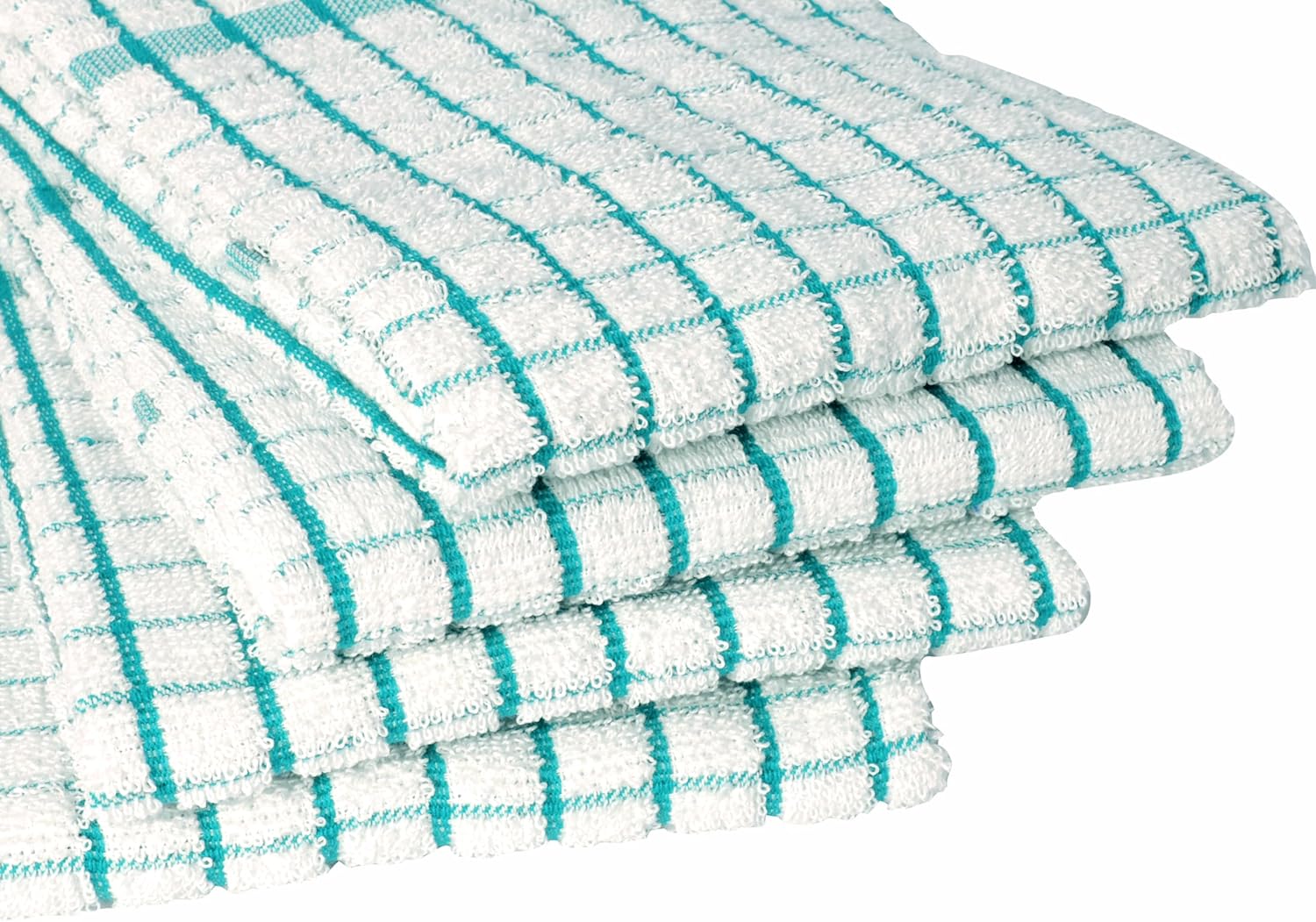 • SET OF 4 DISH TOWELS: This pack includes 4 premium 20" x 28" kitchen dish cloths made from soft, highly absorbent terry cotton. Perfect for everyday kitchen use, these dish towels offer excellent absorbency and durability for drying dishes, cleaning, and wiping surfaces.