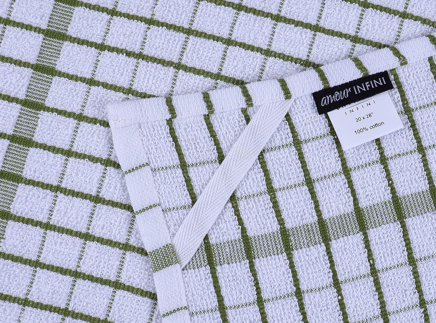 • SET OF 4 DISH TOWELS: This pack includes 4 premium 20" x 28" kitchen dish cloths made from soft, highly absorbent terry cotton. Perfect for everyday kitchen use, these dish towels offer excellent absorbency and durability for drying dishes, cleaning, and wiping surfaces.