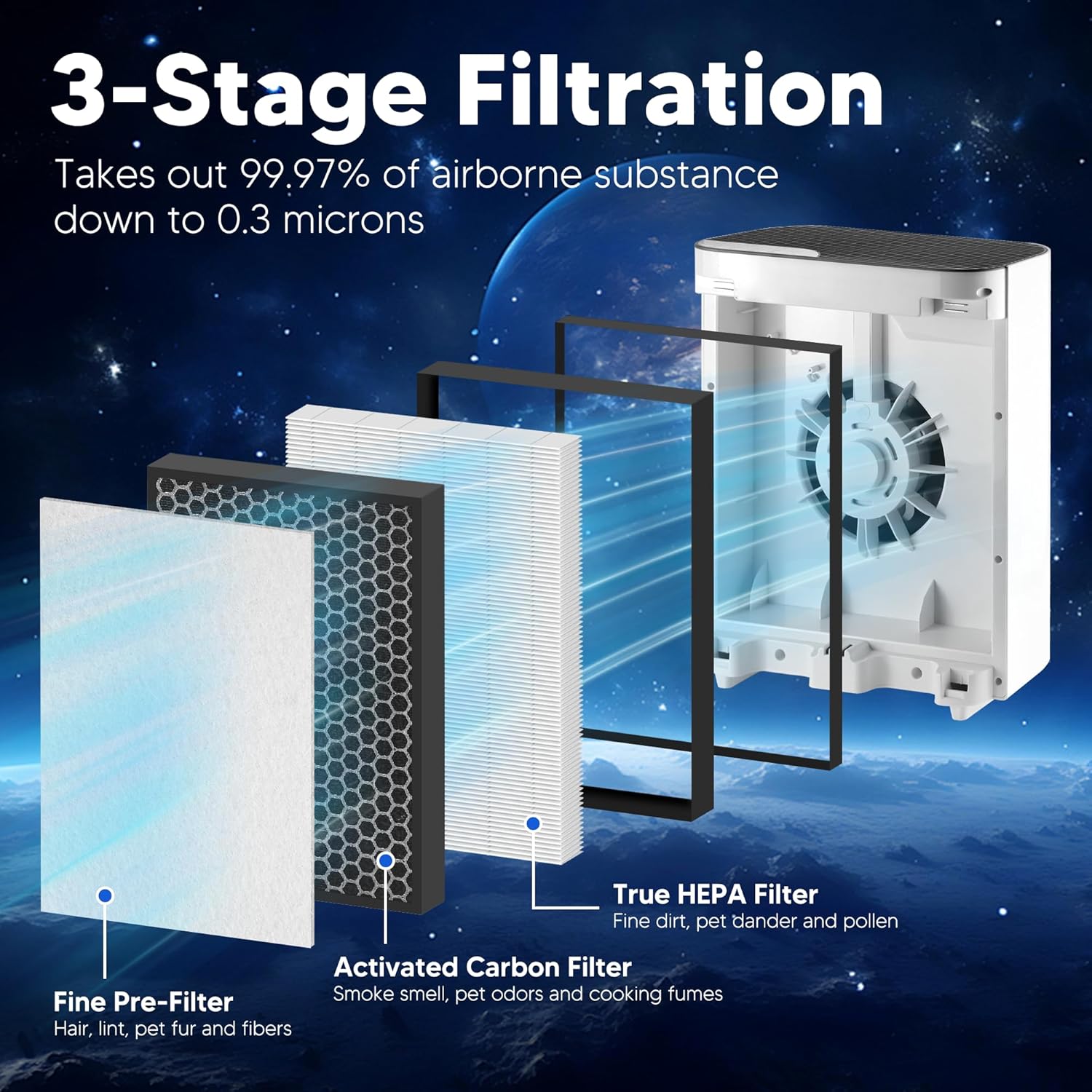 • Material : 3-in-1 True HEPA and High-Efficiency Activated Carbon Filters Set