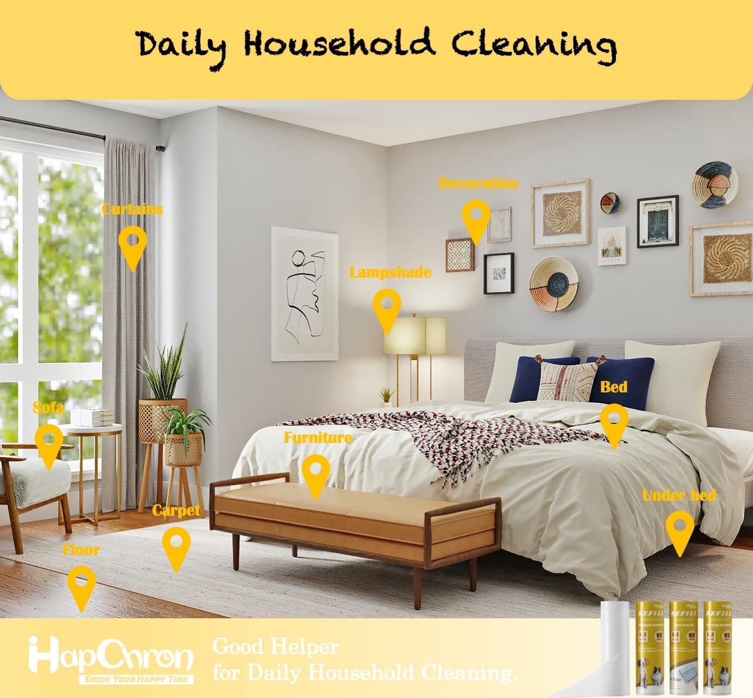 • 🏆 EVERYDAY CLEAN: Multifunctional intuitive design combined with ease of use makes this lint roller an ALL-IN-ONE household lint roller easily applicable to a variety of scenarios. In addition,the lint remover comes with a free hook, which can be hung in the room, living room, cloakroom, and is very convenient for storage. To extend the use of this heavy duty lint roller, use HapChron 6.3" Supersize Lint Roller Refills.