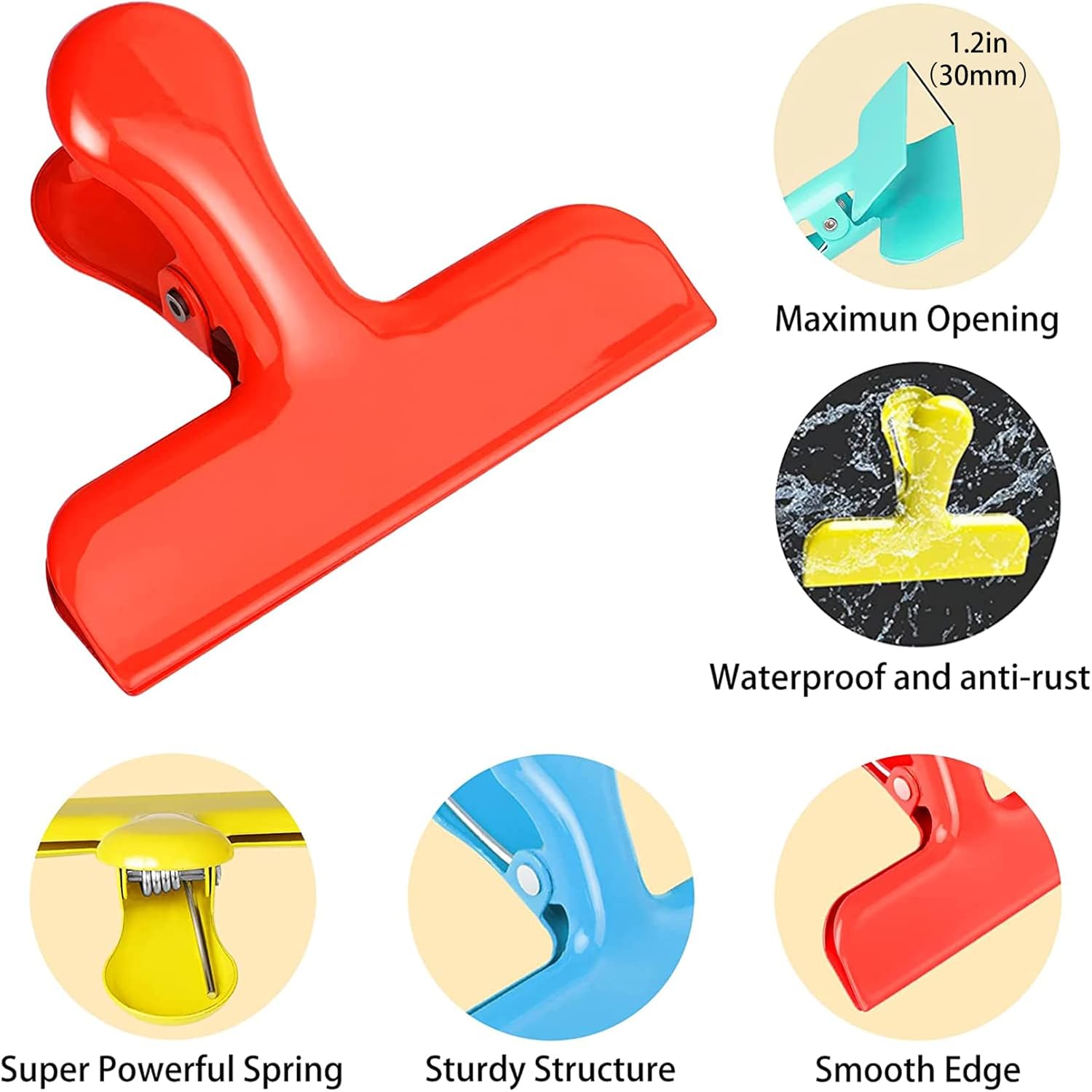 • 【STANDARD SIZE】These large and heavy-duty clips are 3 inches wide, with a powerful spring that exerts more force and bites closer to ensure a tight seal. These clips are suitable for use with small to large bags, keeping contents fully sealed and fresh for longer.