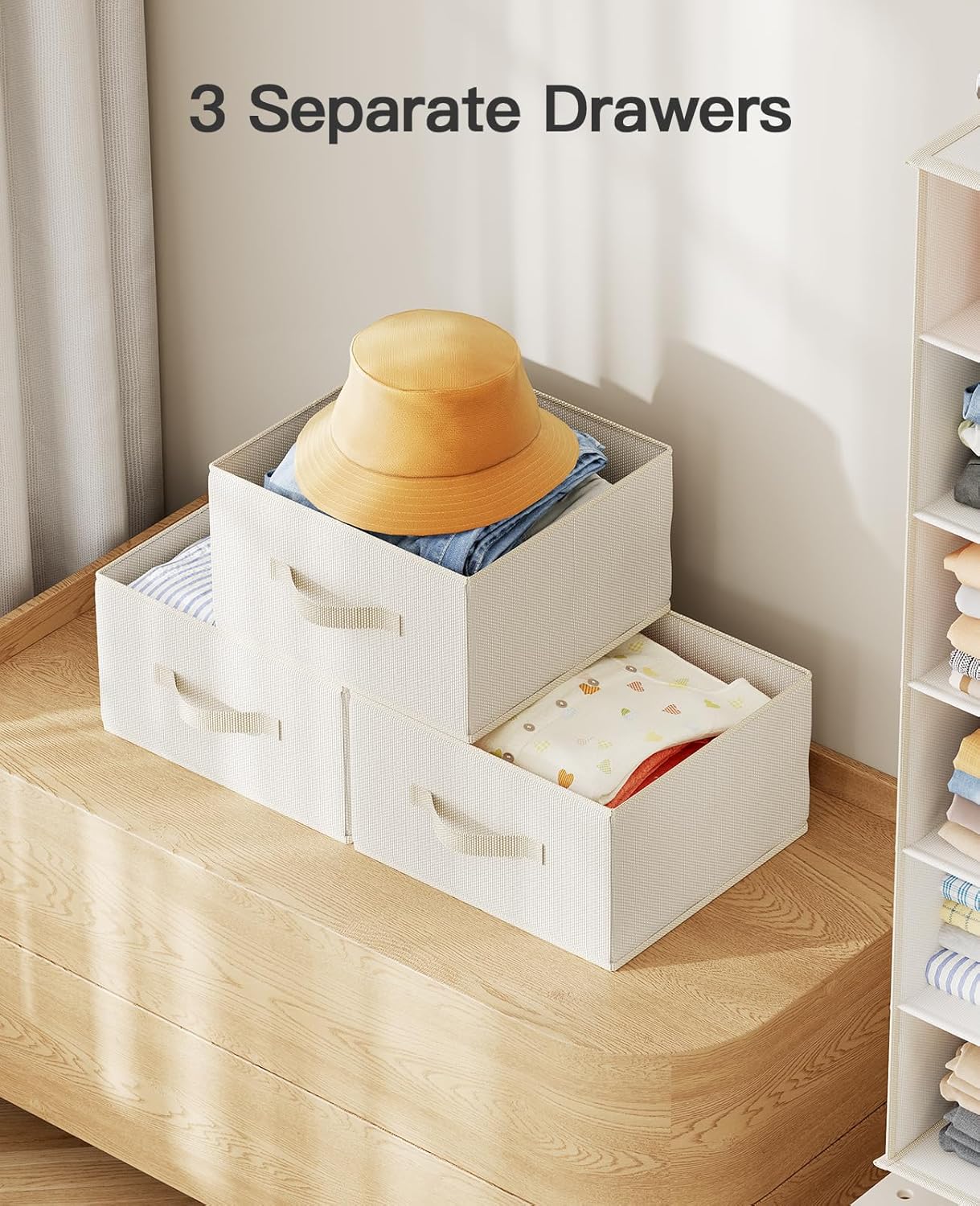 • DURABLE MATERIAL: The non-woven material is durable with an MDF upper and lower panel for structure. The steel triangle-shaped hooks make it easy to hang the unit on a standard closet rod and help to provide strength.