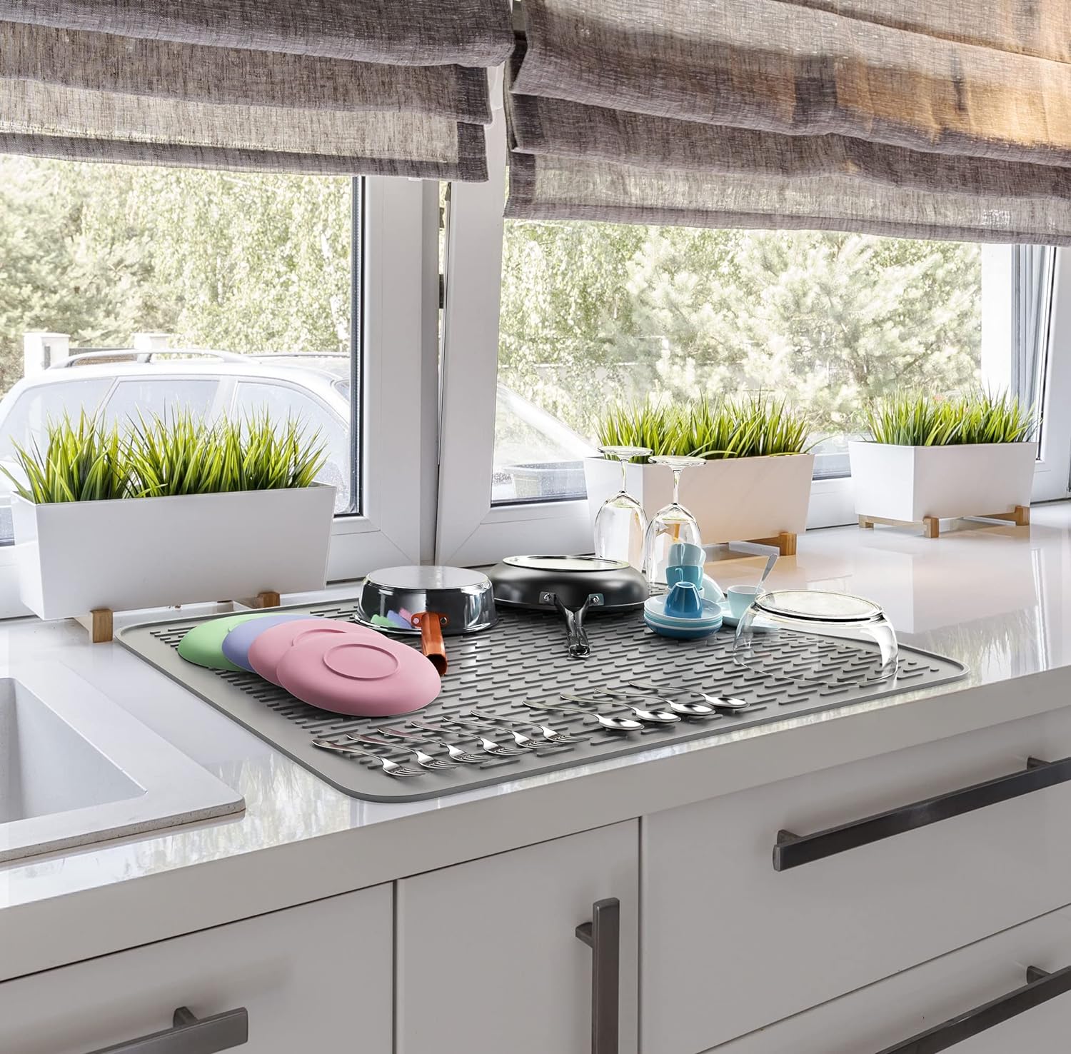 • Heat-Resistant & Multi-Functional: Use as a heat-resistant drying mat for hot cookware straight from the stove or oven. Our large drying mat versatile design makes it suitable for various kitchen tasks.