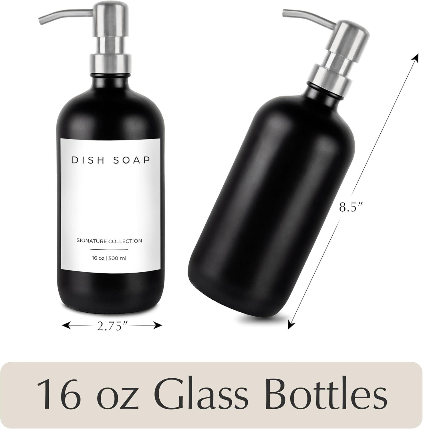• ✅ 2-in-1 COMBO: Upgrade your home with our glass soap dispenser set. The dish soap dispensers are crafted from the highest quality glass and can be used as soap dispensers for kitchen sinks, soap dispensers for bathrooms, or as hand soap dispenser of your favorite liquid. The kitchen soap dispensers come with 2 dish soap dispensers for kitchen bottles (16 ounces), 2 stainless steel pumps, and 5 waterproof labels. Our selection includes colors including amber, clear, white, and black.