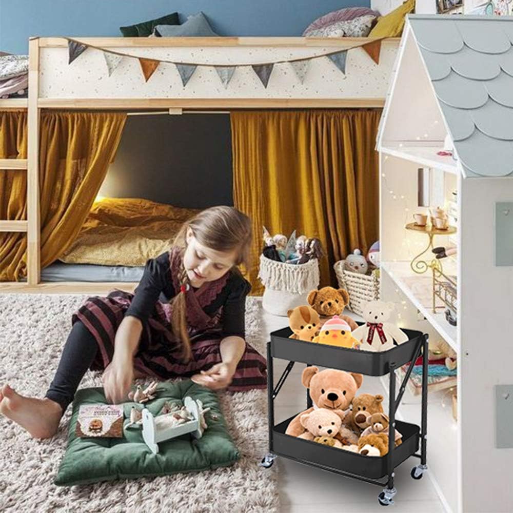 • 【Multifunctional Storage】-- This foldable 2 tier rolling storage cart has multiple functions which can be used anywhere you want it to be such as office, bathroom, kitchen, art studio, salon, garden, garages, laundry rooms hobby and craft areas and so on. It can be used as a tools cart, organization rack, sofa or bed side end table, nightstand, book cart, bedroom/living room storage cart and so on.