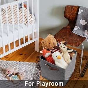 • 【Premium Material】The fabric used in the 11 inch fabric storage cube storage organizer bins is fashionable and breathable, sturdy, breathable fabric materials with no peculiar smell, and the cardboard inside is strong and easy to fold. These cloth storage baskets for shelves are sturdy enough to hold your stuff well. The leather handle is durable and easy to carry