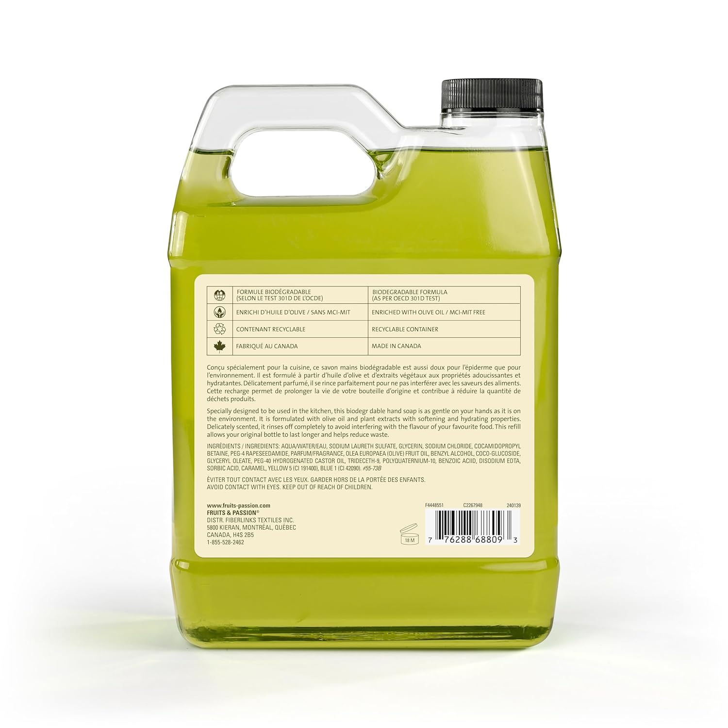 Cucina Fruits & Passion Hand Soap Refill – 1 Liter (33.8 oz) Coriander and Olive Tree – Purifying Organic Kitchen Hand Soap with Olive Oil – Vegan and Moisturizing Formula