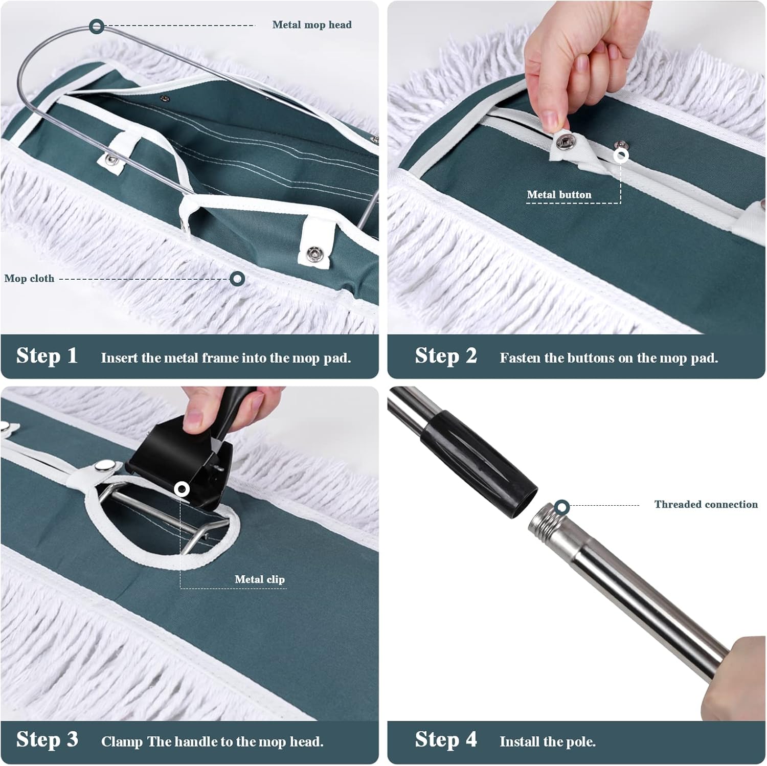 • Wide Application: This industrial mop is suitable for hardwood floors, tile, marble, epoxy, laminate, vinyl and other materials. We attach great importance to our customers' shopping experience. If you encounter any problems during use, please contact us promptly. Replacement Cloth:B0CWTYGB1M.