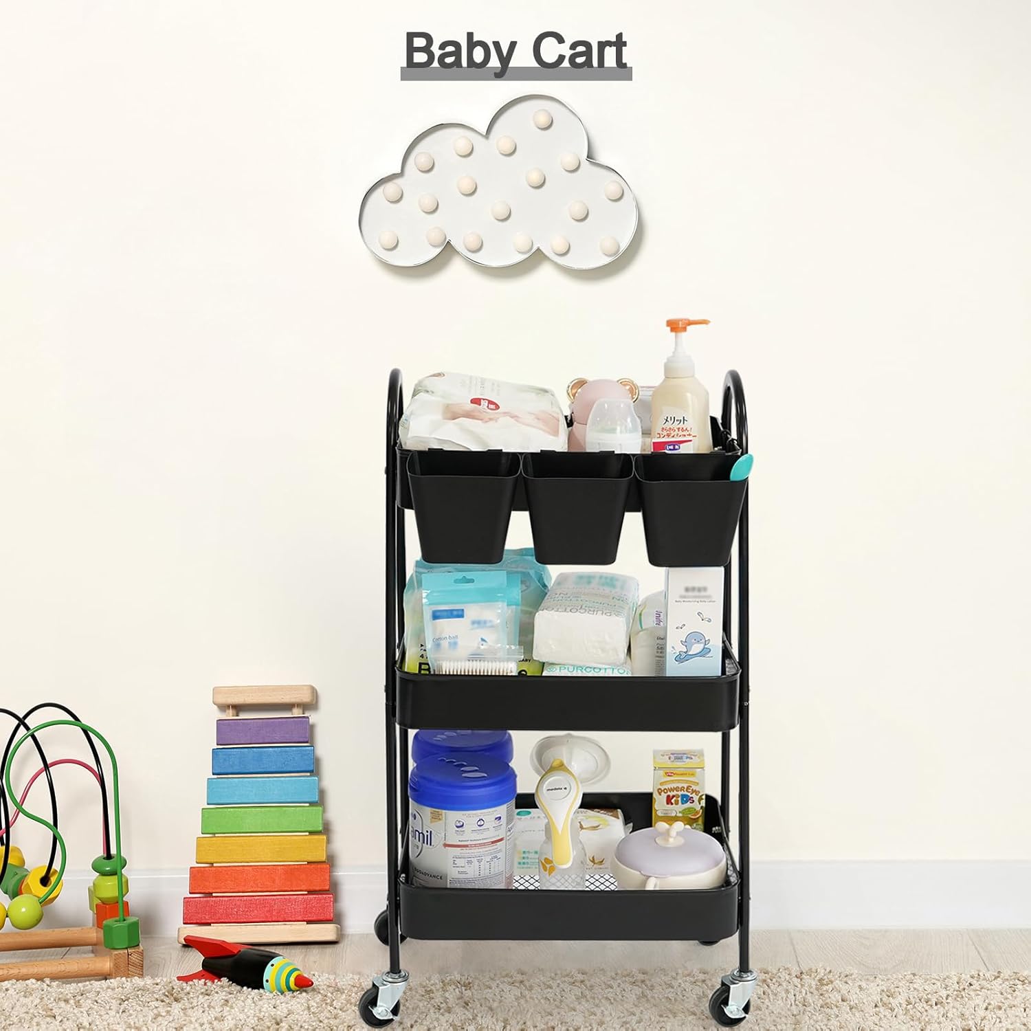 • Smart Storage Design: The 3-tier metal basket is perfect for organizing art supplies, toiletries, office essentials or kitchen spices. The storage cart also comes with 3 hanging cups and 4 hooks to maximize space for small items like brushes, scissors, or kitchen tools