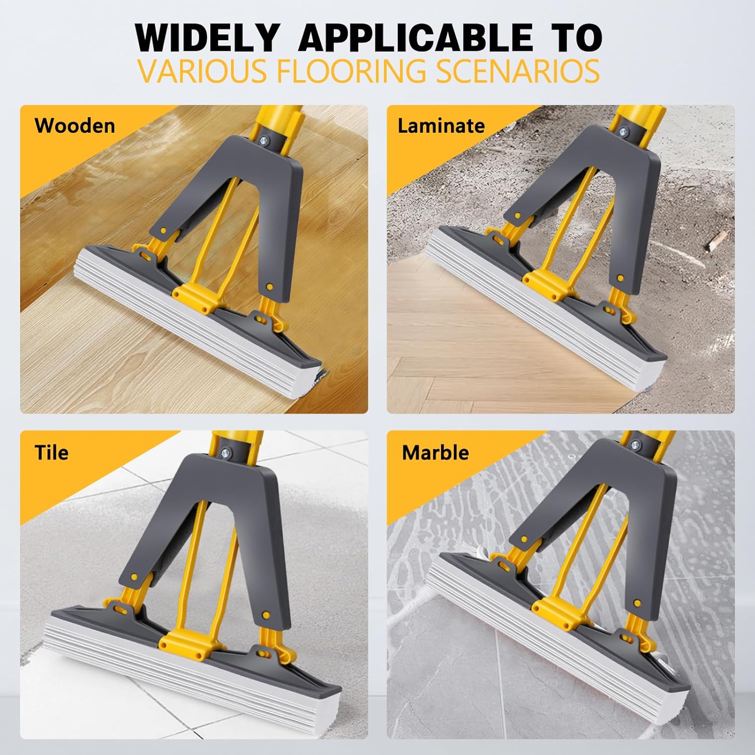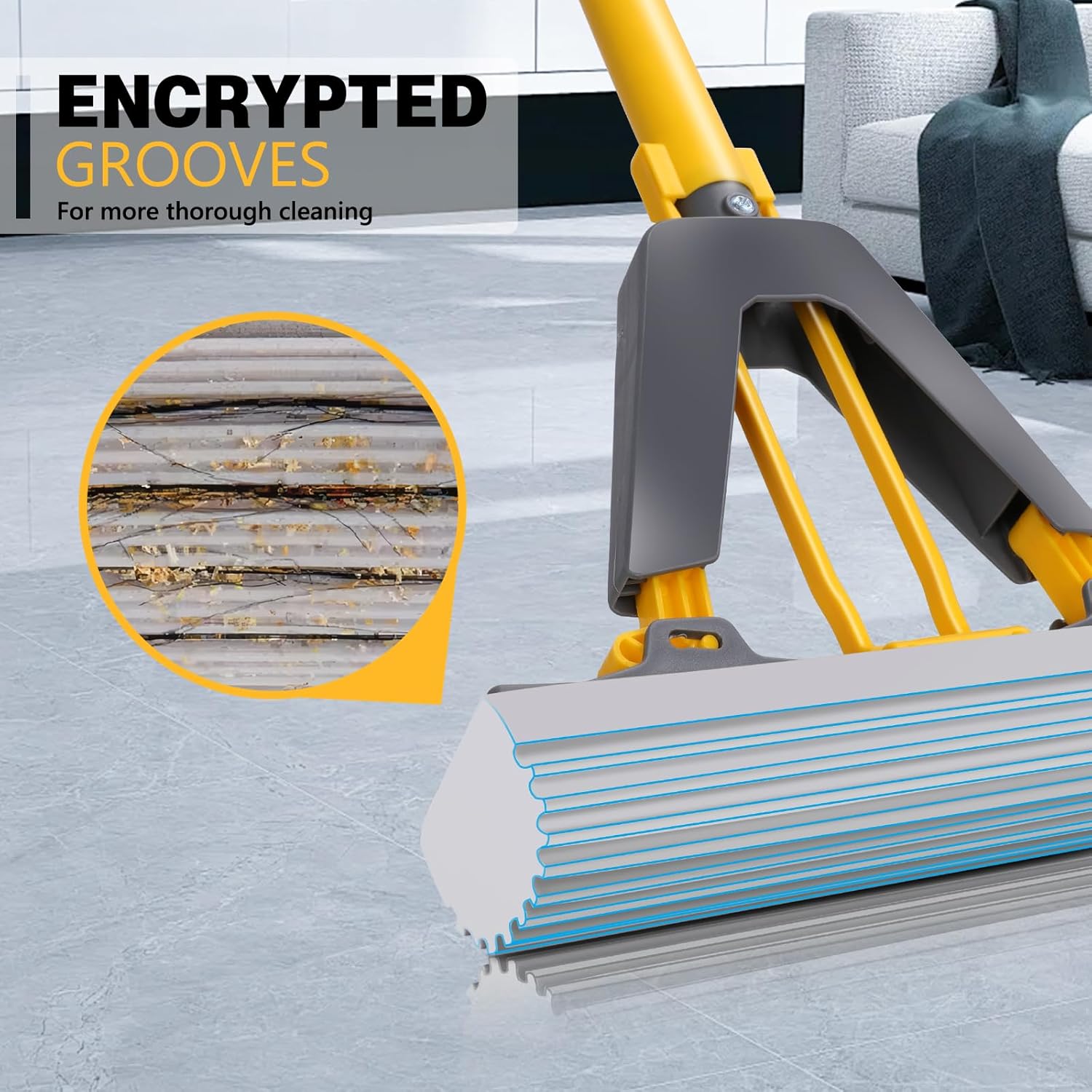 • Super Absorbent Sponge Mop: The sponge mop adopts high quality PVA sponge head, which has strong water absorption, rapid softening and strong decontamination ability. The sponge is designed with horizontal grooves to better absorb dirt, lint and hair on the floor. Comes with 3 reusable sponge heads that save you money and are easy to replace.