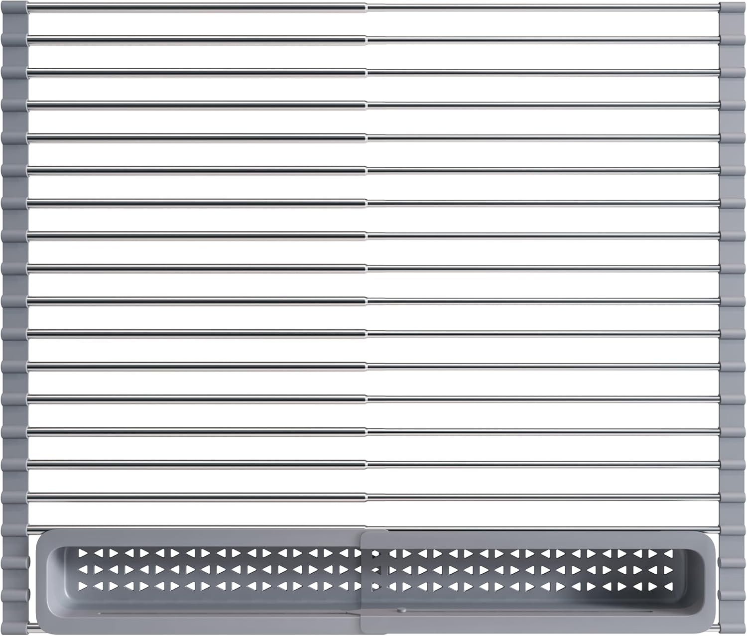 • Space Saving & Easy to Store: This expandable dish drying rack is using on the sink, which doesn't take up your usual counter space, and the water will drip directly into the sink. The drying rack for kitchen sink can easily rolled up for storage when it is not in use, leaving the sinks and kitchen counter keep neat and organized. This over the sin drying rack will be the best parter in the kitchen organization and storage!