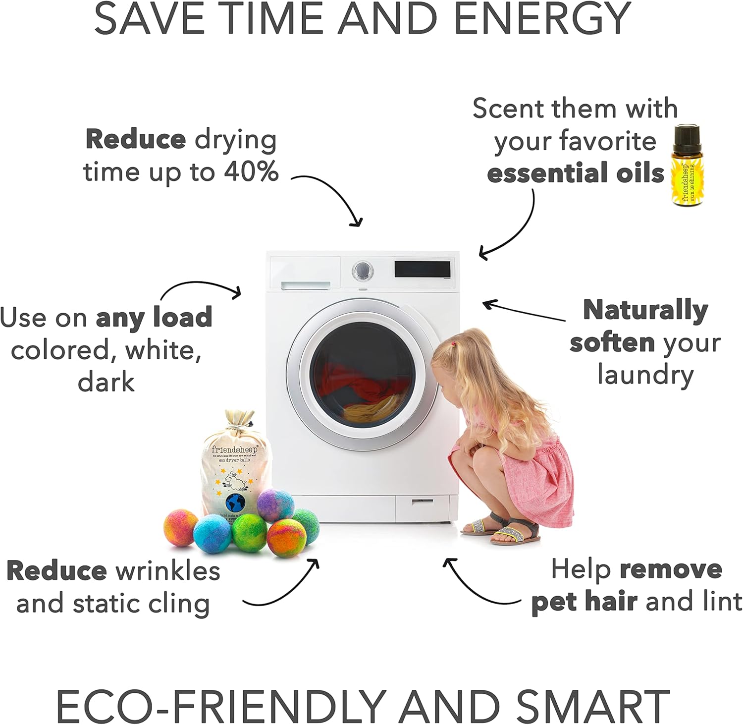 Friendsheep Wool Dryer Balls, Organic Reusable Fabric Softener Alternative for Laundry, Handmade, Fair Trade, Hypoallergenic, Eco-Friendly, Plastic-Free (6 Pack XL - Galxy Tie Dye)