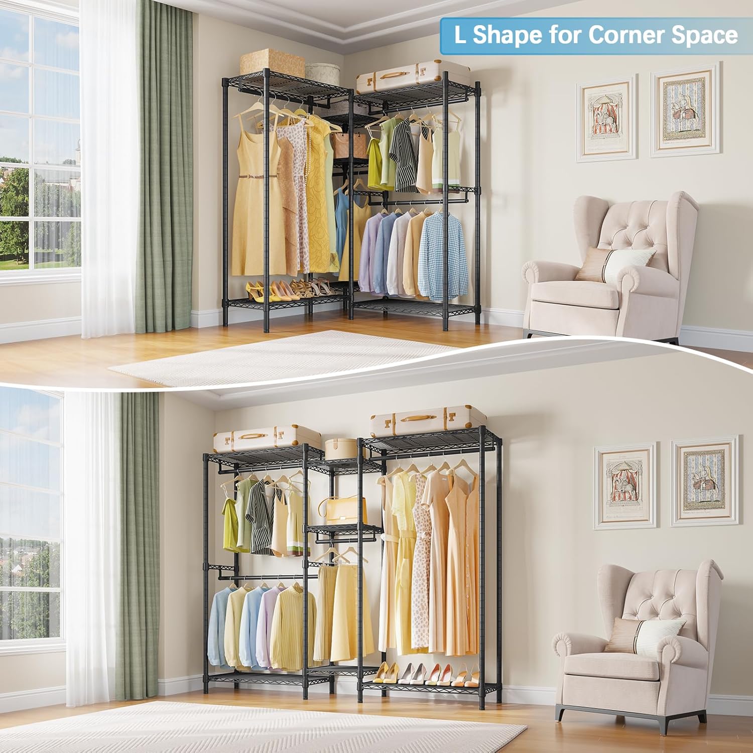 • Two-style Assembly: Can be shaped into two different layouts to suit your storage needs, Straight-lined shape or L shape. “L” shape for small spaces like corner, apartment, bedroom; Straight-lined shape for walk-in closet and cloakroom clothing store.