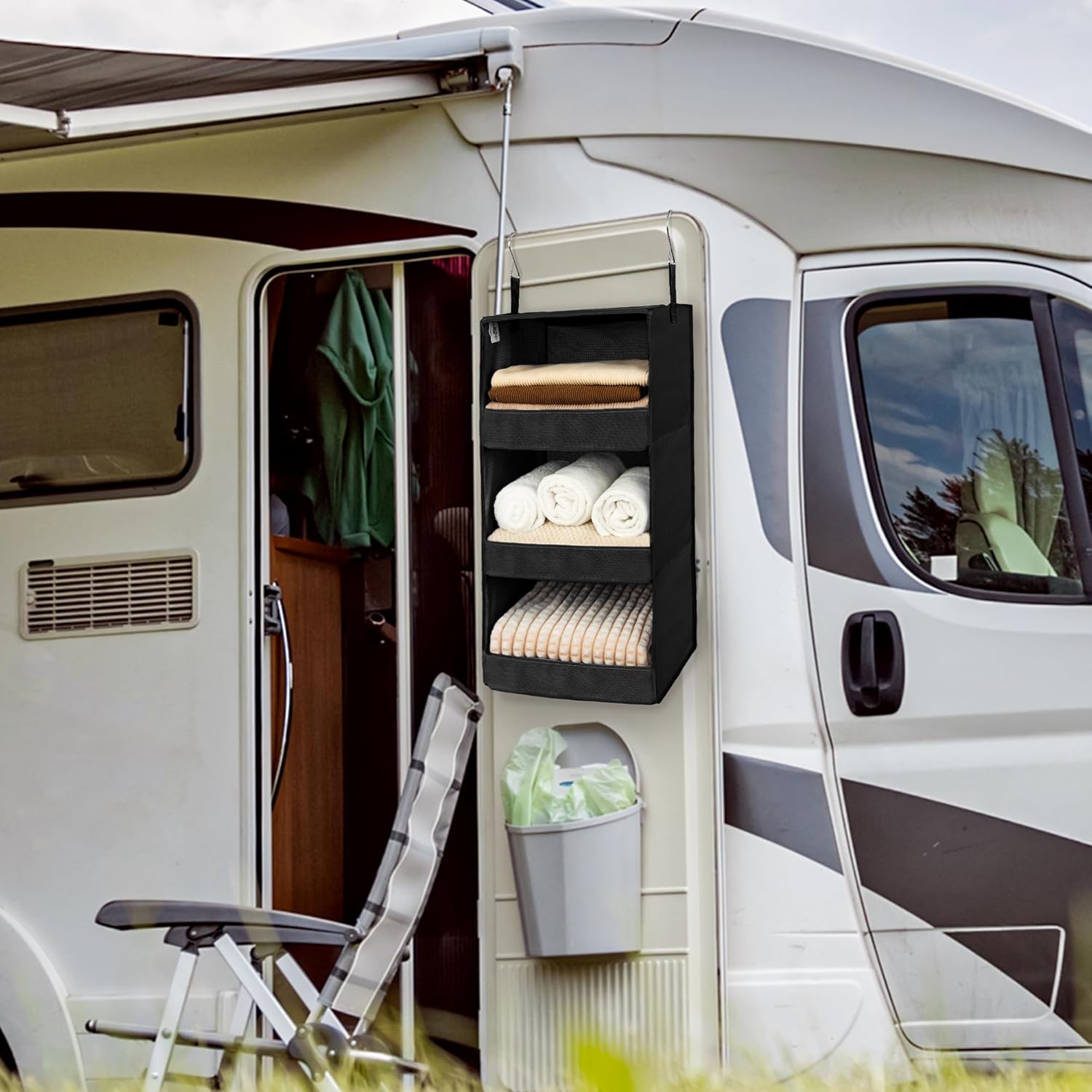 GRANNY SAYS Hanging Closet Shelf, 3-Shelf Foldable Hanging Organizers and Storage, Hanging Organizer for Camper Organization, Black, 2-Pack