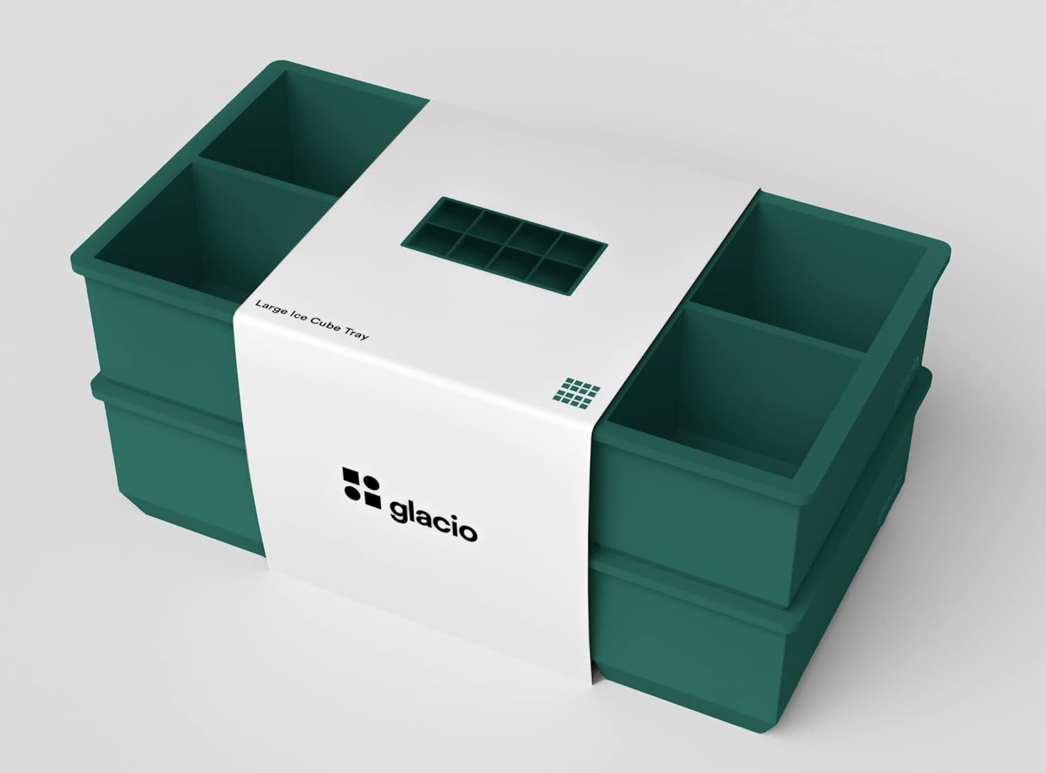 glacio Ice Cube Molds โ€“ 2-Pack Silicone Trays for 8 Large Square Cubes โ€“ Slow-Melt Ice for Whiskey, Cocktails, Coffee & More