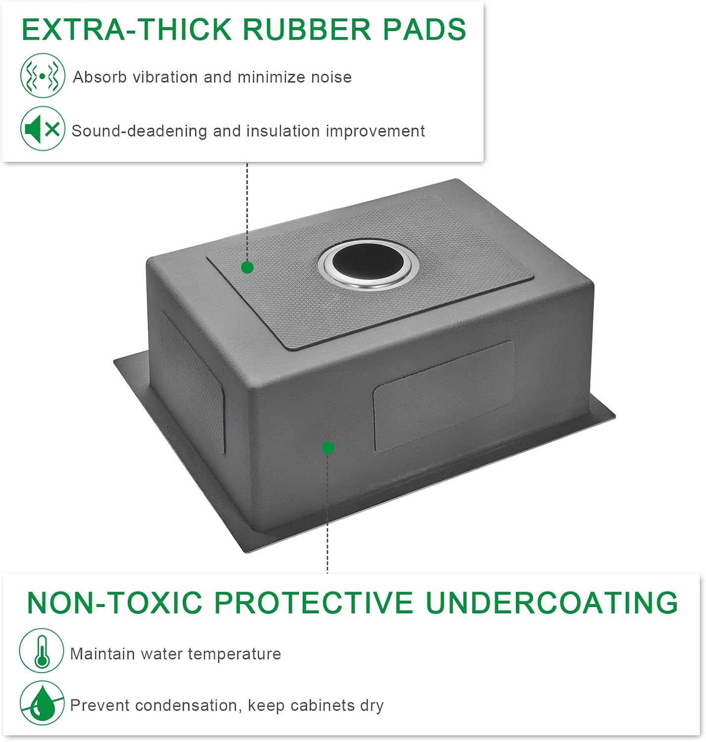 • 【Ultra-Quiet Kitchen Sink】Enjoy a peaceful kitchen with our heavy-duty thick rubber padding and undercoating that significantly reduces noise from clattering water and minimizes condensation, keeping your workspace calm and dry