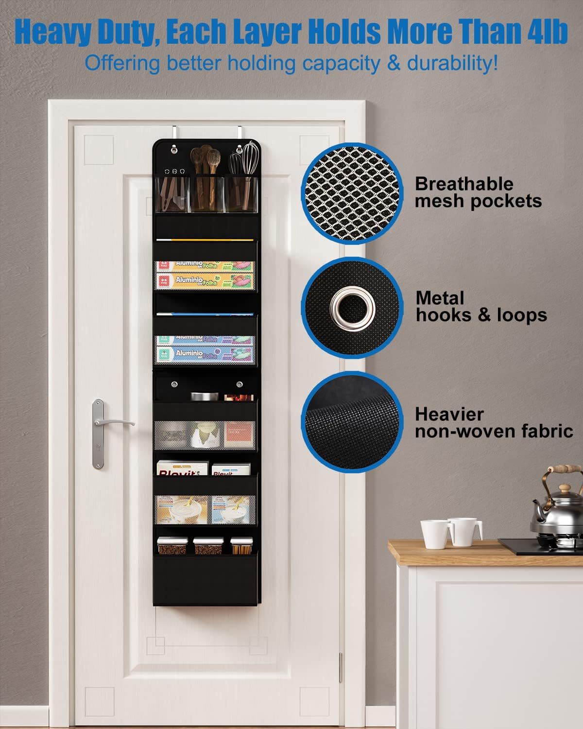 Over Door Organizer, 6 Shelf Camper Storage for RV Bathroom, Behind The Door Storage, Hanging Organizers for Toy Diaper Bedroom Closet (Black)