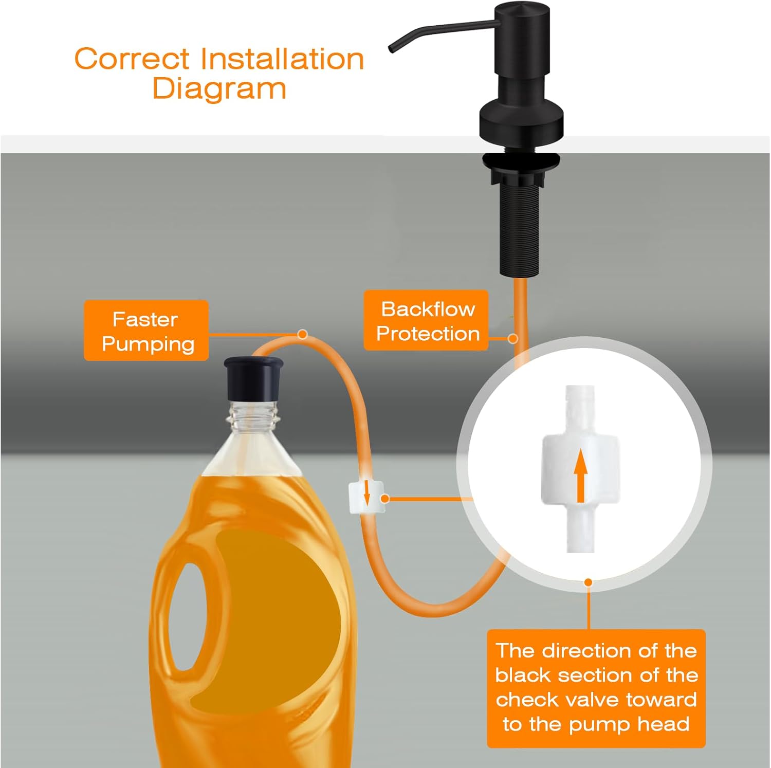 • Premium Quality & Durable: The kitchen sink soap dispenser is made of 304 stainless steel and premium quality PE plastic. Multi-layered brushed nickel finish makes it rust proof, so it has higher durability and reliability. Food-Grade silicone tube is soft and elastic, not easy to bend under the countertop, the check valve make the soap prime in the tube.