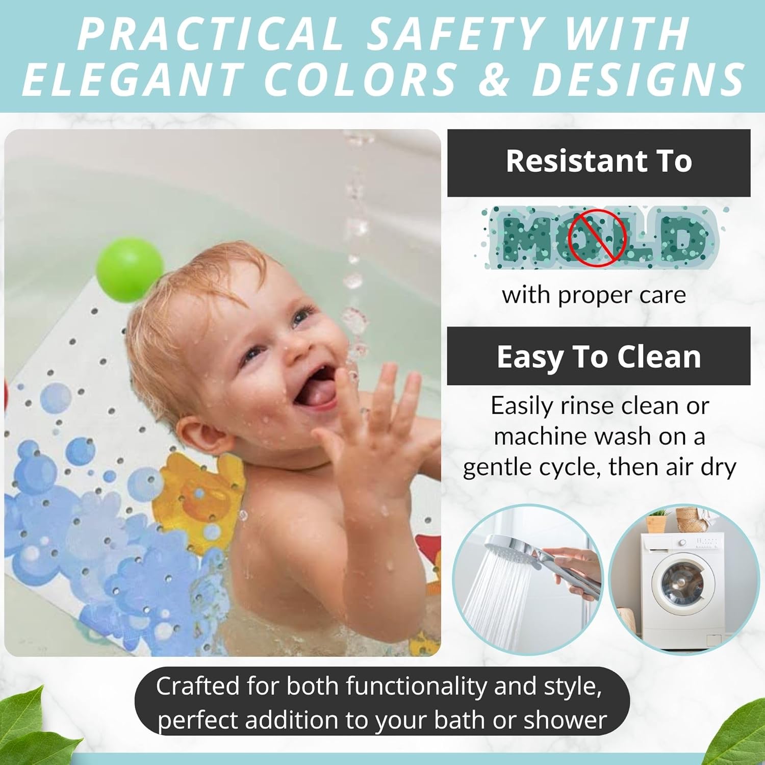 • NON-SLIP Boasting strong grip suction cups, this long bath mat firmly adheres to the bathtub floor, creating a stable and anti-slip environment to keep yourself and your little ones safe during bath time, ensuring a delightful and secure bath time experience for your little one.