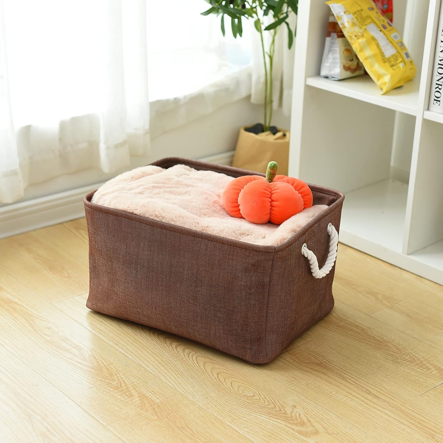 TheWarmHome Organization and Storage Basket for Organizing - 17x14x10 inch 3 Pack Fabric Storage Cubes, Collapsible Storage Bins for Shelves Closet Organizer Toy Gift Cloth (Brown)