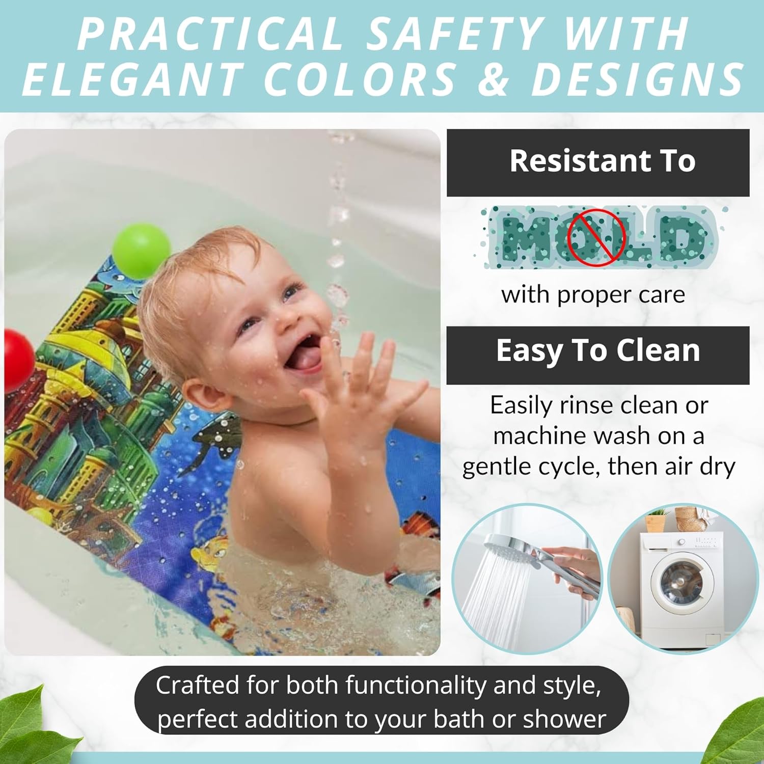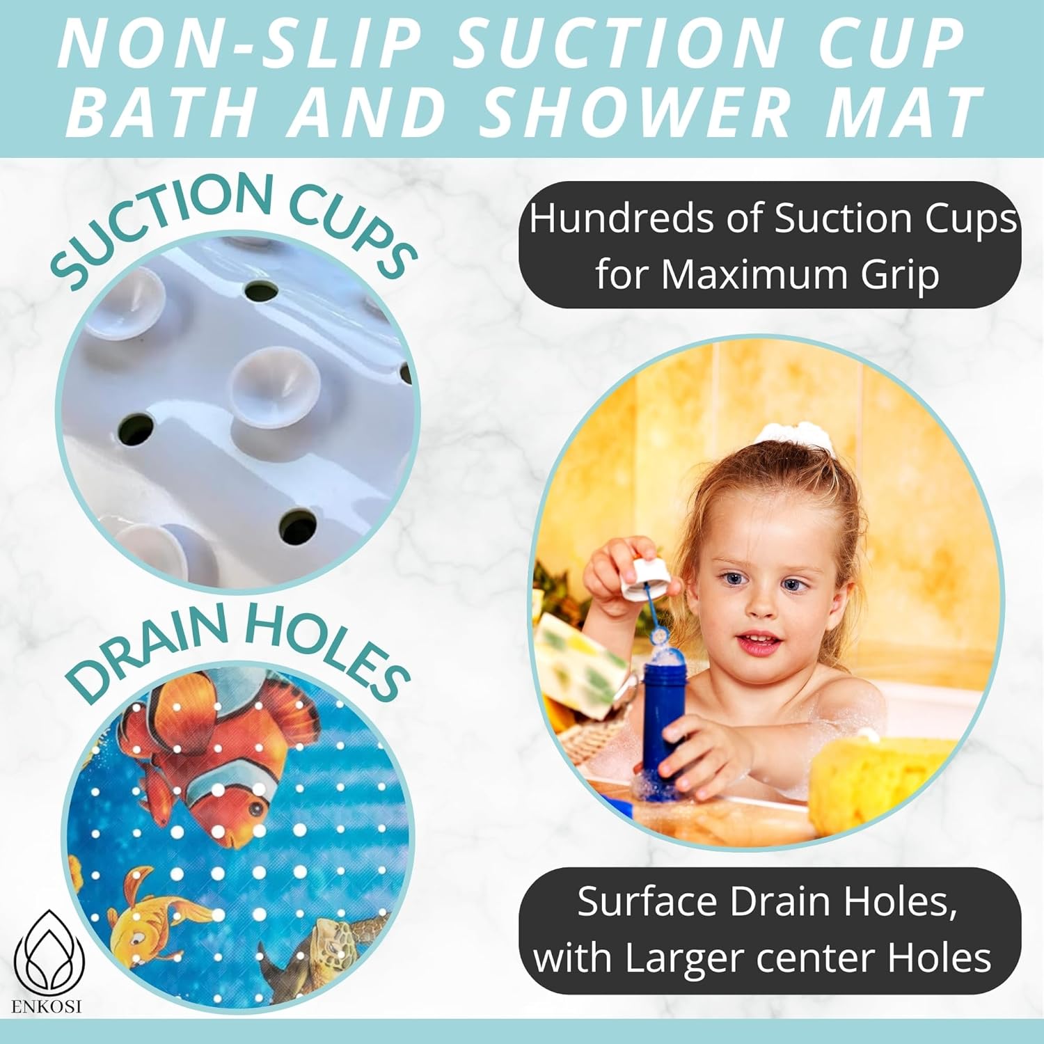 • EXTRA-LARGE SIZE Measuring an extended 40 x 16 inches, our long, kid-friendly bath mat guarantees maximum coverage. Many other mats are thinner and smaller, leaving areas of your tub exposed. Our secure suction cup durable mat is a versatile and essential accessory for any family bathroom.