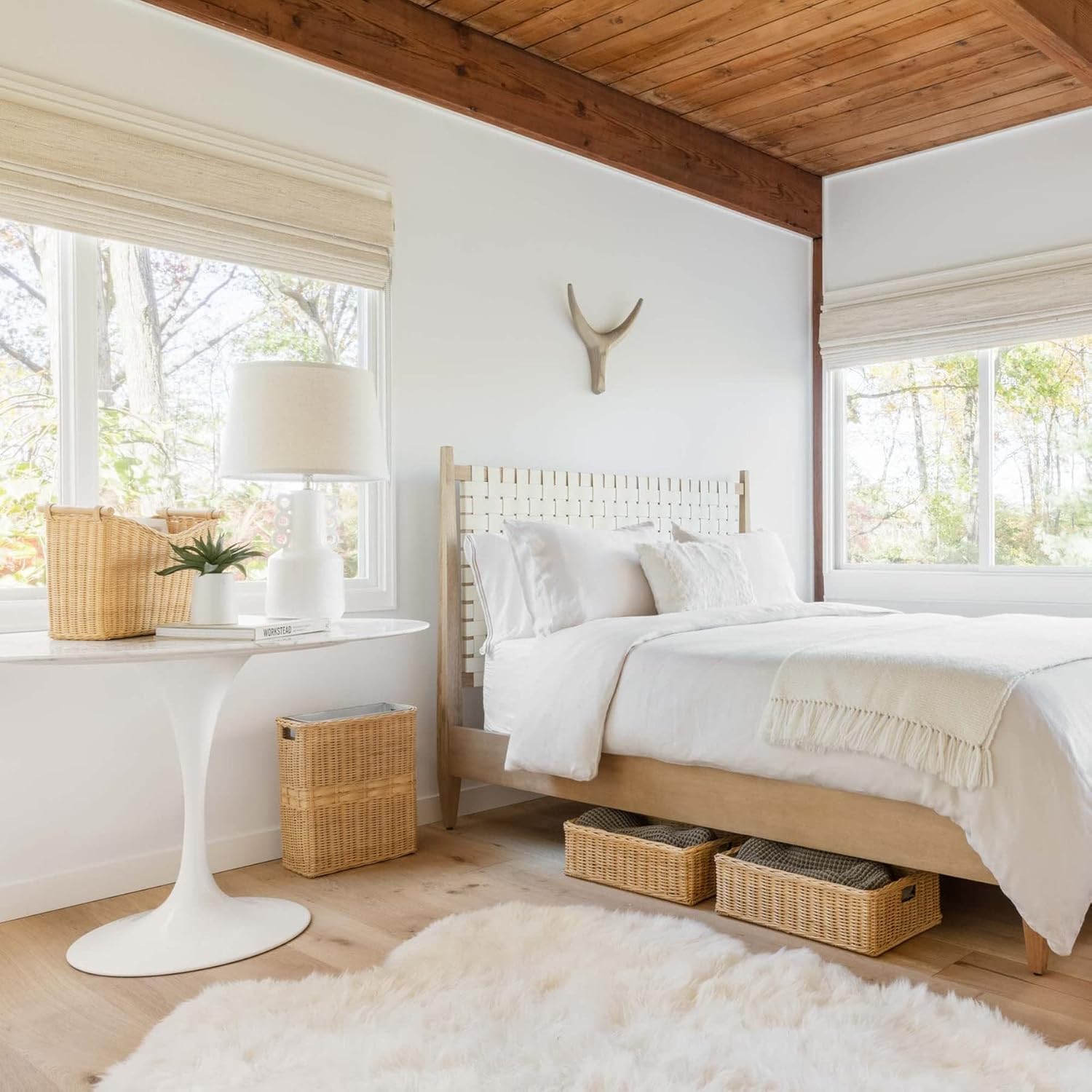 • Hand-woven from natural rattan, choose from 3 sizes of these low baskets to store linens under the bed, shoes in a closet, or boxes in the pantry.