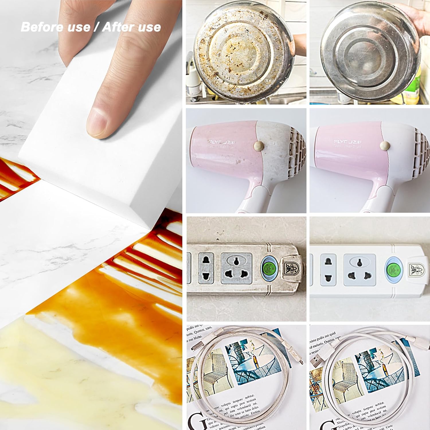 • 🧽Reusable Magic Melamine Sponge: Do not rub it after each use, just immerse the nano sponge in water, water molecules will enter the nanoporous structure, and the dirt adsorbed in the pores will be discharged automatically. The can be cut freely as required,sponge can be reused 4-6 times.