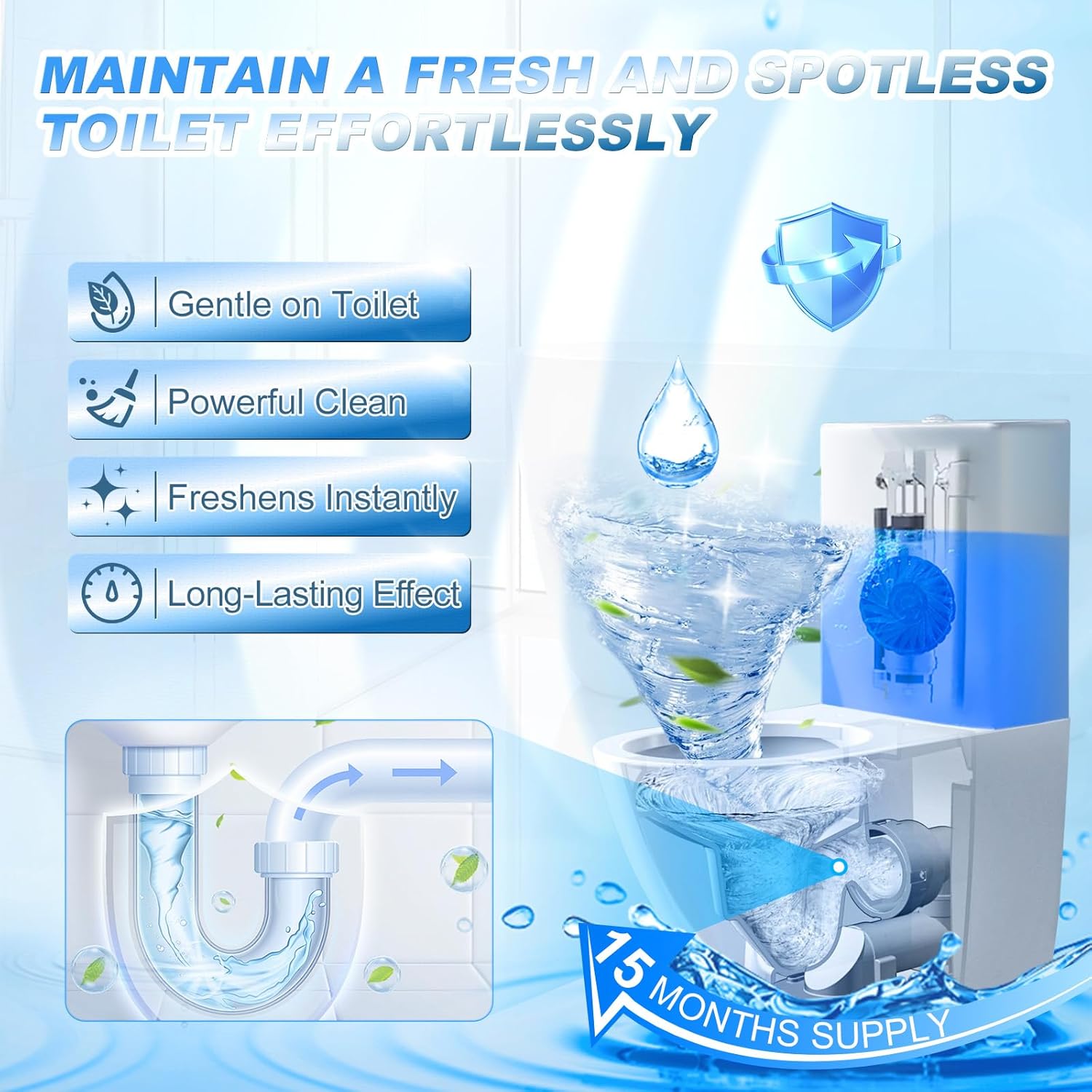 • Just put one blue toilet cleaner bubble directly into the toilet tank then it will make the toilet refresh under every brushing.Toilet cleaner saves your time and protects your health