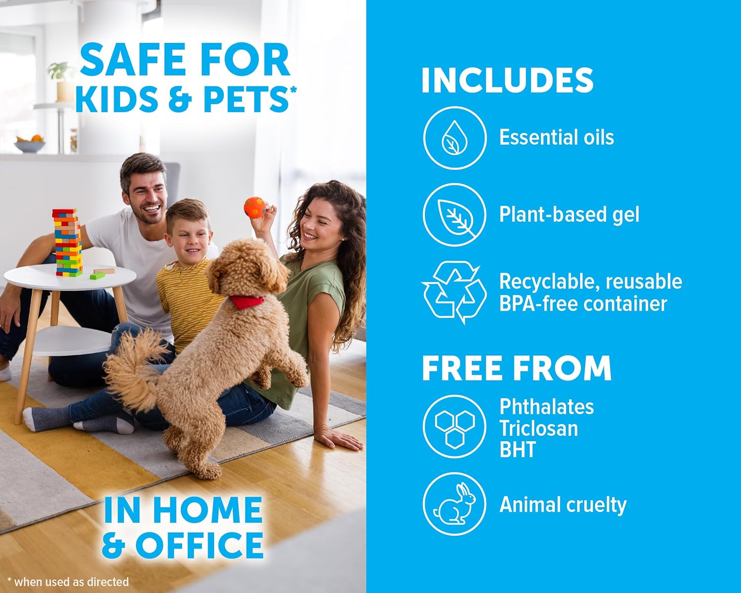 • WORKS ANYWHERE: Safe for use in medium-sized spaces (kitchens, bathrooms, basements, laundry areas, & more) around home, office, kids and pets – without batteries, plugs, refills, or sprays