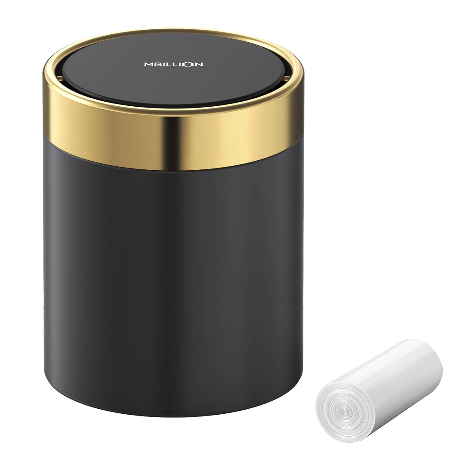 • Small Trash Can : 1.5 Liter capacity makes this trash can the perfect size for rooms with limited space.Trash bin measures 4.7 x 4.7 x 5.9 inches overall.Perfect for office near or under desk, bathroom wastebasket, and apartment kitchens