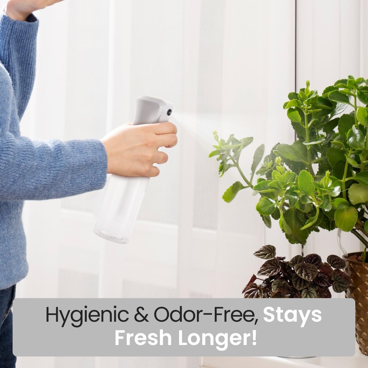 • 360° Fine Mist Sprayer: Easily reach every angle with our continuous spray bottle. Just a gentle squeeze releases a smooth, long-lasting mist—perfect for evenly coating hair, plants, or surfaces.
