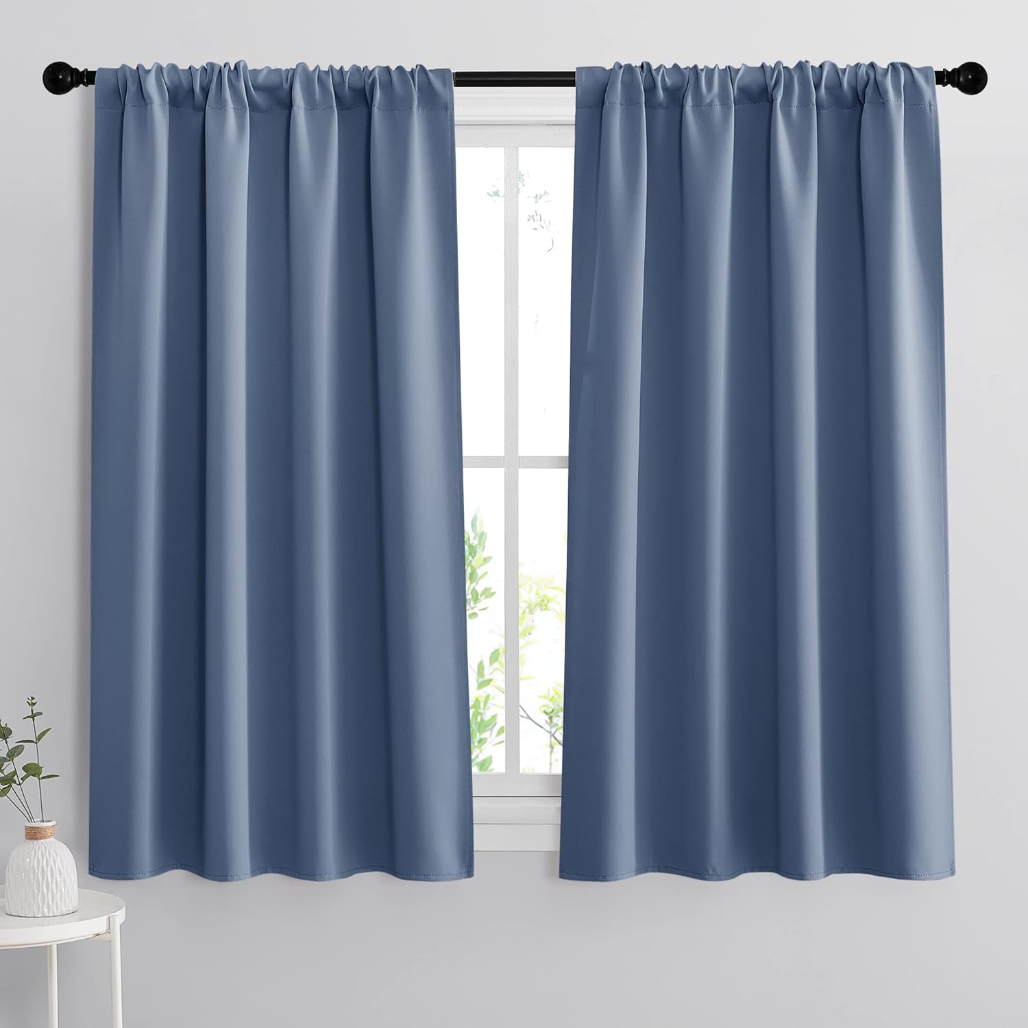 RYB HOME Blackout Closet Curtains - Thermal Insulated Noise Reducing Energy Efficiency Small Window Decor for Kitchen Bedroom Bathroom, 42 inches Wide x 54 inches Long, Stone Blue, 1 Pair